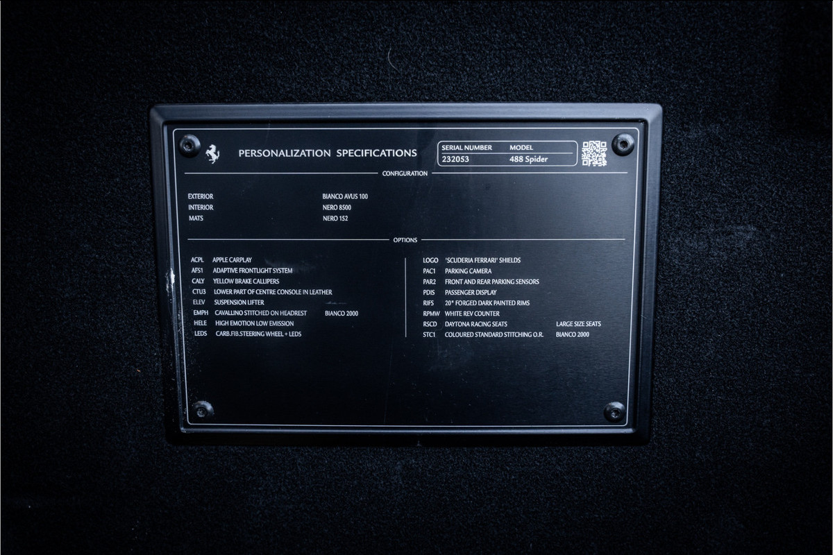 Ferrari 488 3.9 Spider HELE - Passenger Display | Lift | Camera | Carplay