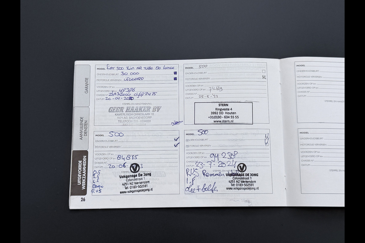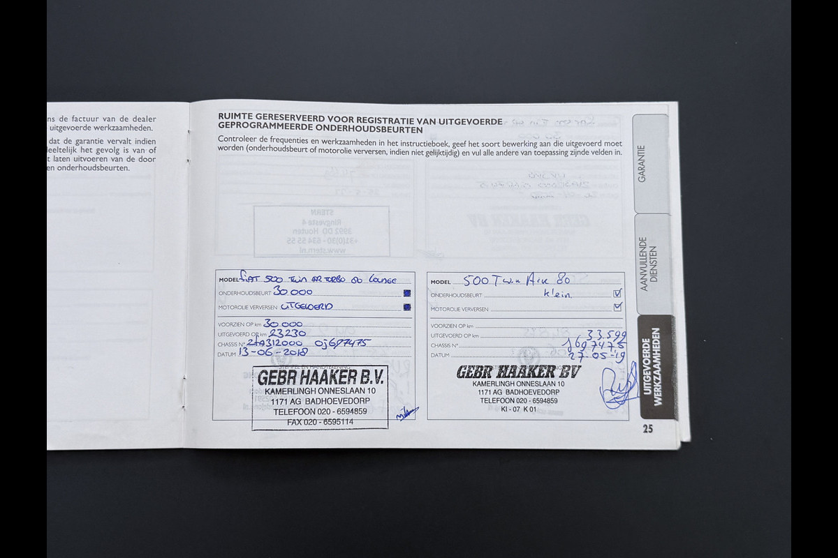 Onderhoudsboekjes: Aanwezig