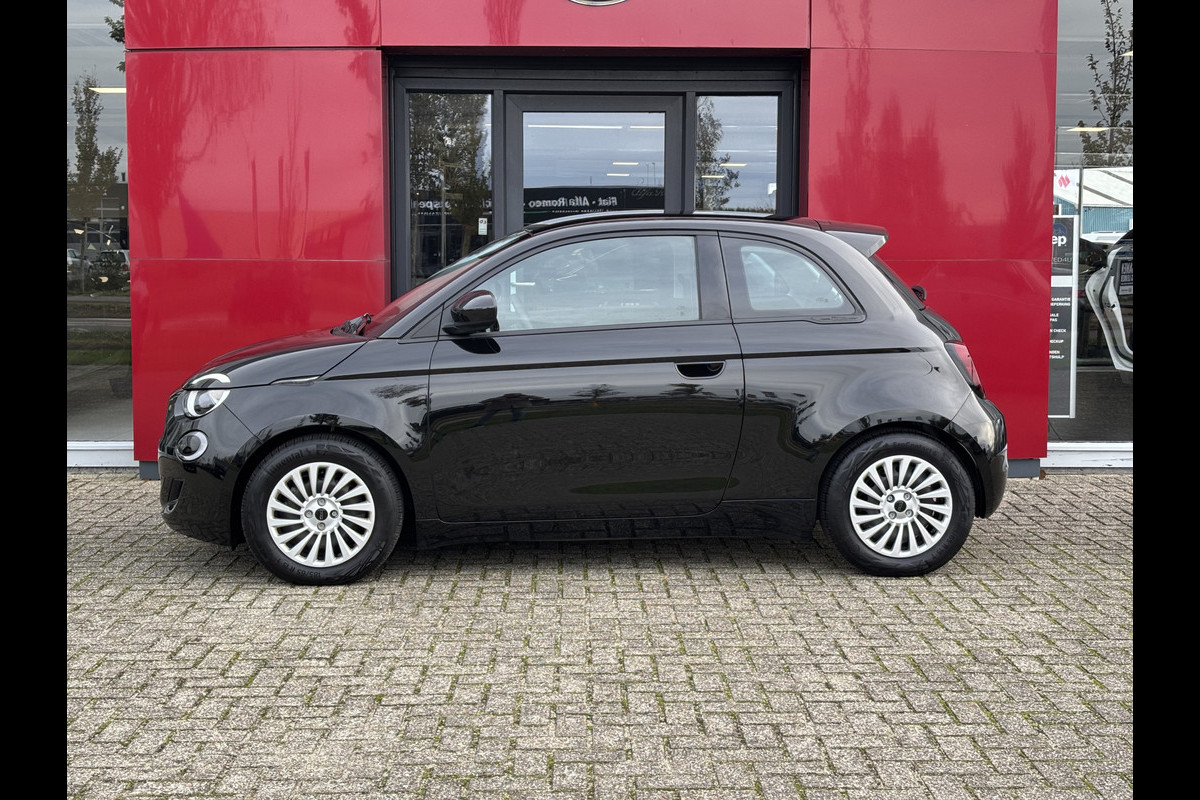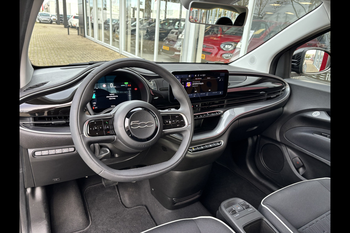 De Fiat 500, zoals dit exemplaar, valt op door de combinatie van zijn ingetogen design, zijn ruime interieur en zijn uitstekende rijeigenschappen. Met de combinatie van elektrische aandrijving en automatische transmissie manoeuvreert u soepel door het verkeer. De auto heeft een opmerkelijk lage kilometerstand van slechts 5625 Scherpe bochten, pittige acceleraties? In de sportstoelen blijft u altijd in positie. In deze Fiat profiteert u onder andere ook van: 18 inch lichtmetalen velgen, Full LED koplampen, sportonderstel, sportinterieur, donker getint glas achter en LED-achterlichten.