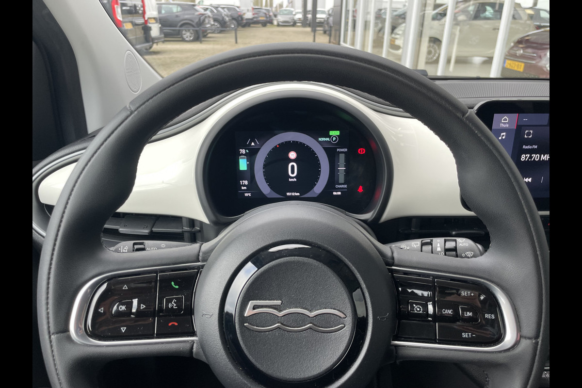 Met deze Fiat 500 maakt u een krachtig statement: elektrisch rijden is niet alleen beter voor het milieu, het is ook gewoon leuk. Stil en stevig optrekken zonder extra uitstoot? De elektromotor zorgt ervoor! De auto heeft een opmerkelijk lage kilometerstand van slechts 15112 Opvallend zijn de stoere sportstoelen, die zorgen voor een onwrikbare zit in de scherpe bochten. Tot de uitrusting van deze Fiat behoren ook 18 inch lichtmetalen velgen, Full LED koplampen, sportonderstel, sportinterieur, donker getint glas achter en LED-achterlichten.
