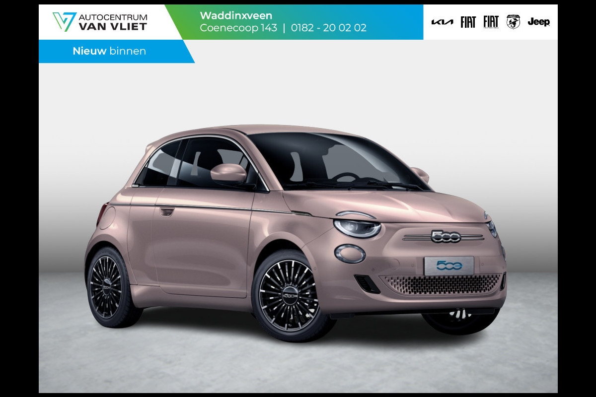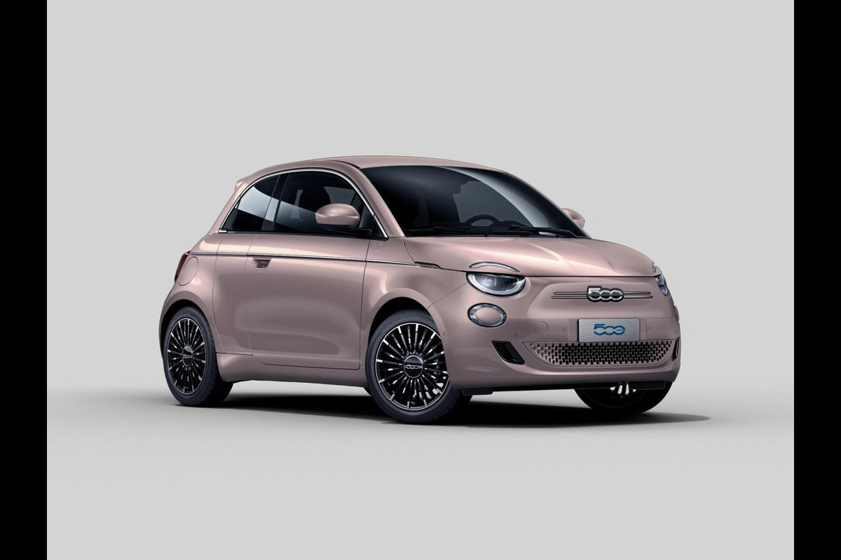 Fiat 500E 3+1 La Prima 42 kWh | 17% Bijtelling | Clima | Cruise | Leder | 17" | Priv Glass | Winter Pack | JBL Sound | BSM | Apple Carplay