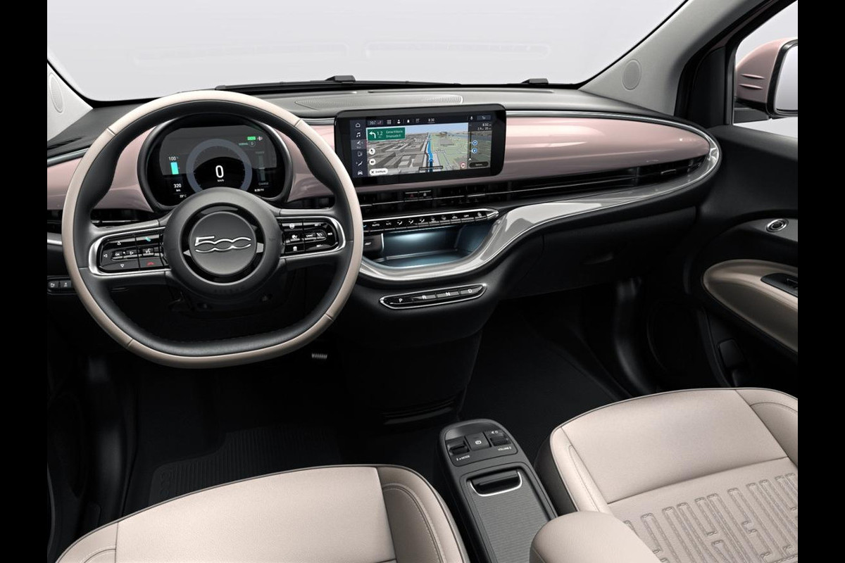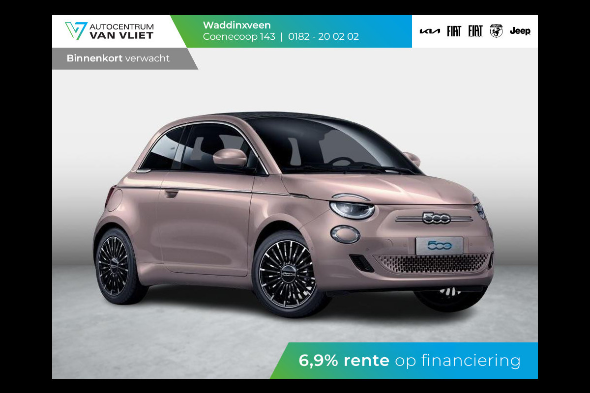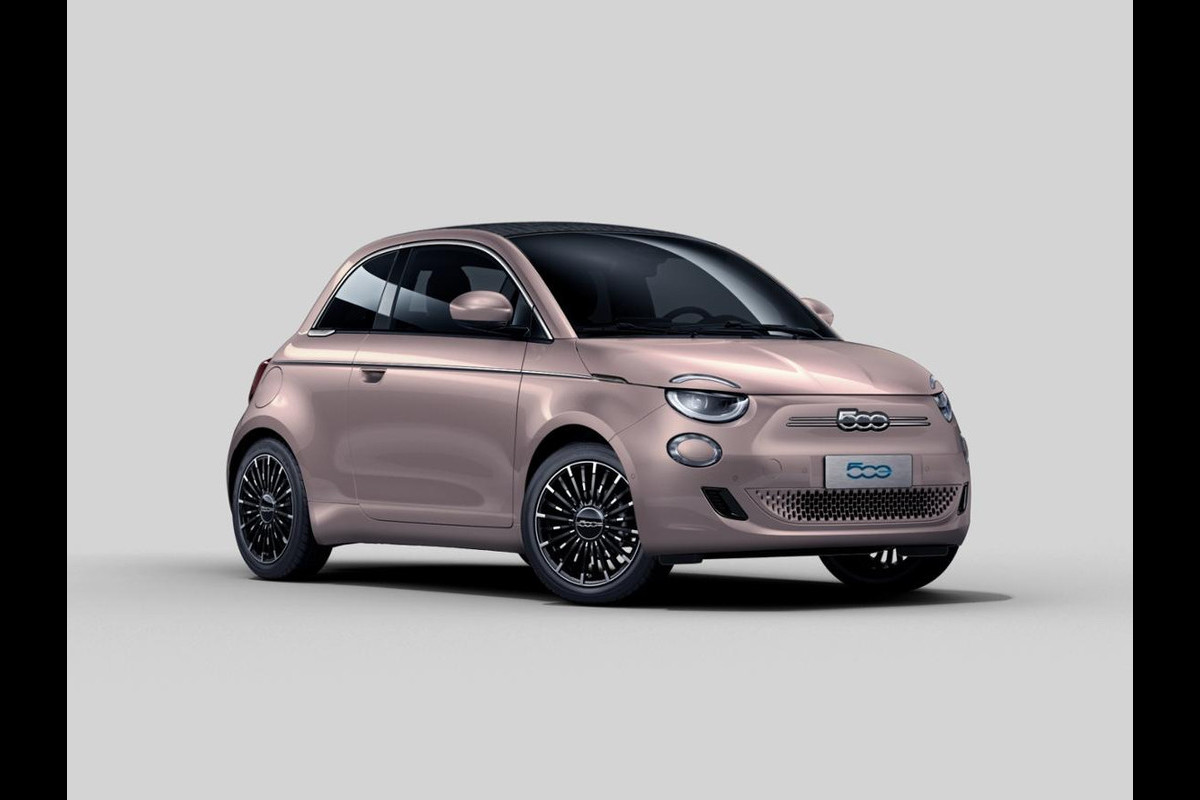 Fiat 500E Cabrio La Prima 42 kWh | 17% Bijtelling | Clima | Cruise | Leder | 17" | Priv Glass | Winter Pack | JBL Sound | BSM | Apple Carplay