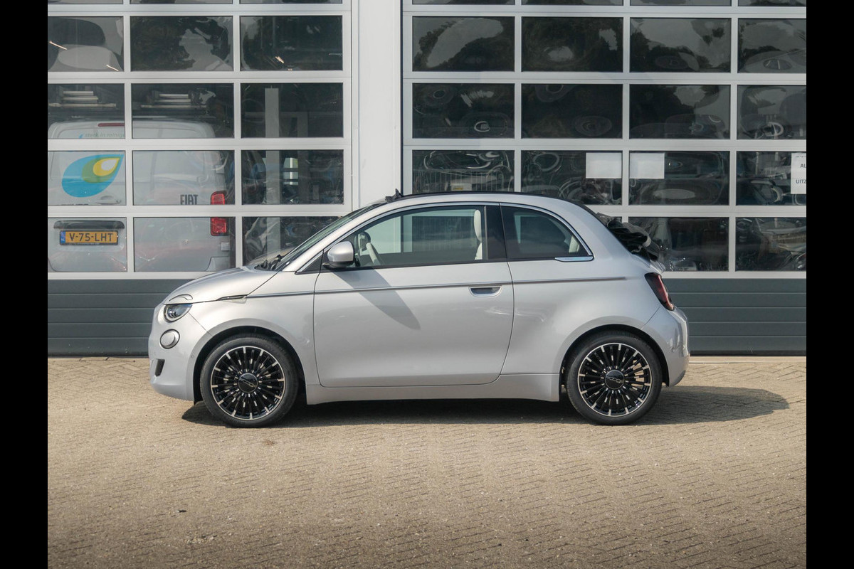 Fiat 500E Cabrio La Prima 42 kWh | 17% Bijtelling | Clima | Cruise | Leder | 17" | Priv Glass | Winter Pack | JBL Sound | BSM | Apple Carplay
