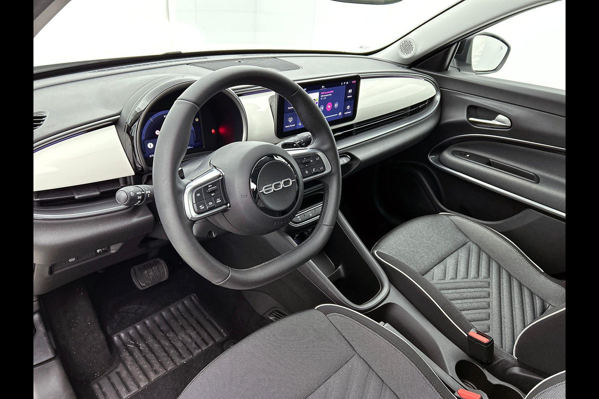 Een occasion om van te dromen. Deze Fiat 600 brengt behalve een pittige motor en een vriendelijke kilometerstand ook de nodige extra's mee. Deze auto is bijna nieuw, ondanks dat hij uit 2024 komt; hij heeft slechts 12401 kilometer afgelegd. De aandrijving van deze Fiat wordt verzorgd door een driecilinder benzinemotor en een automatische transmissie. Bij de uitrusting van deze auto horen onder meer 17 inch lichtmetalen velgen, LED koplampen, in delen neerklapbare achterbank en LED-achterlichten.