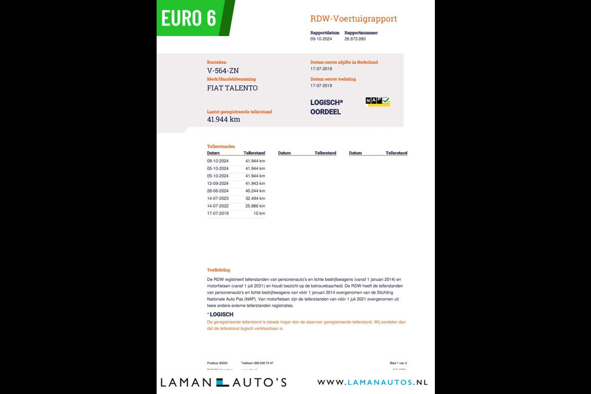 • Logische tellerstand met NAP (RDW gecontroleerd)