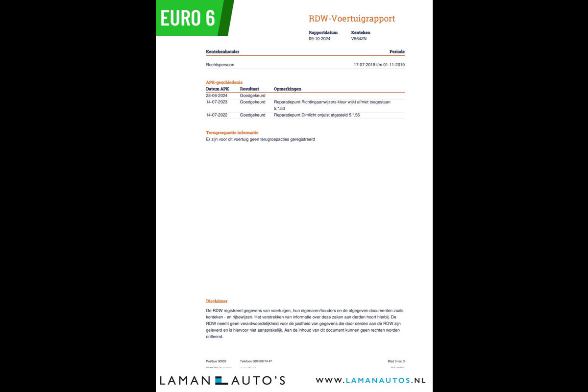 Deze advertentie en de inhoud ervan is met de grootst mogelijke zorg samengesteld. Het is echter mogelijk dat in de gehanteerde advertentietekst bepaalde opties en/of accessoires zijn vermeld welke niet op deze specifieke auto aanwezig zijn. Vraag voor aankoop naar de aanwezige opties en accessoires op de auto of bestelbus van uw keuze. Aan de getoonde informatie kunnen geen rechten worden ontleend en Laman Auto's kan nooit aansprakelijk worden gesteld voor de verstrekte informatie. Voor vragen en/of meer informatie over de exacte uitvoering en beschikbaarheid van de auto bel 06-52509973.