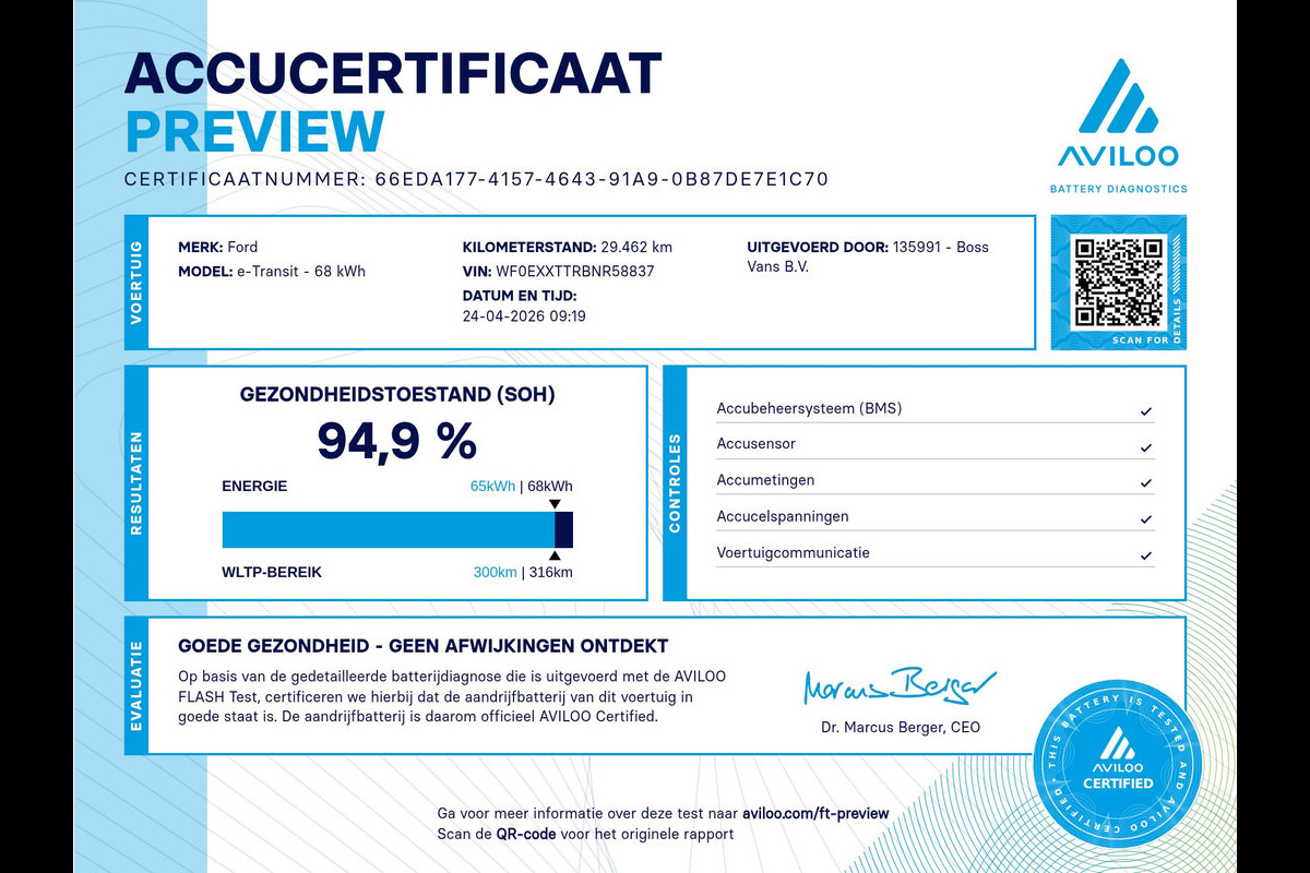 Accu: 75 kWh, Conditie: 94%, Type lithium-ion