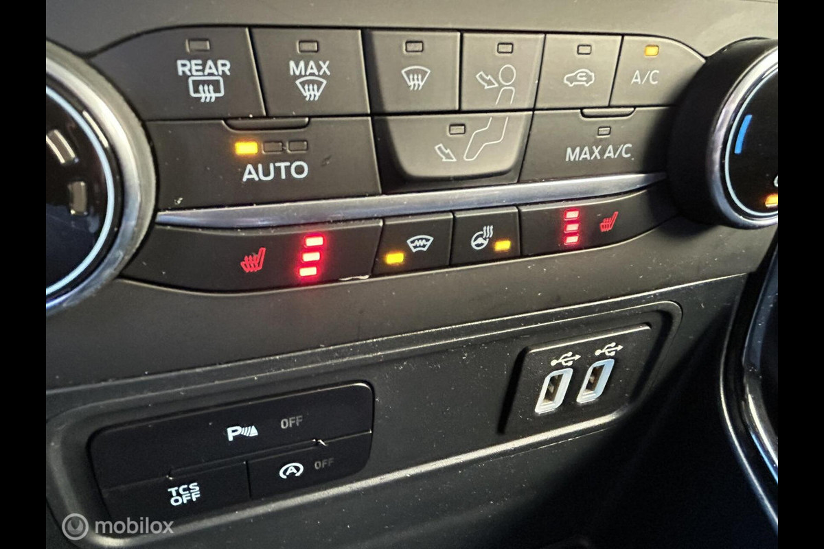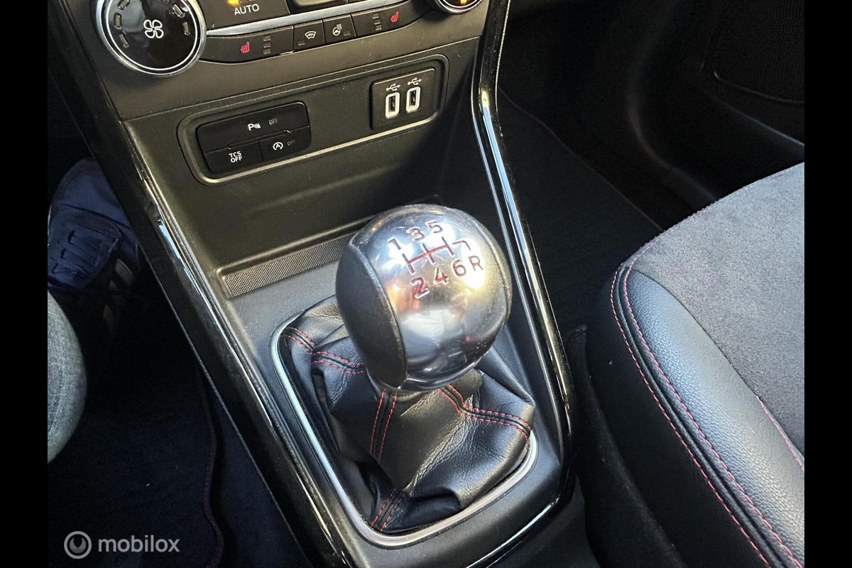 Zeer fijne 125 PK motor in ST-Line uitvoering met haast alle opties die mogelijk waren, oa een winterpakket, verwarmbare stoelen, stuurwiel, voorruitverwarming, automatische airco, full map navigatie, carkit, leder multifunctioneel stuurwiel, cruisecontrol, middenarmsteun, half lederen bekleding met alcantara stof en rood stiksel, privacy glass, parkeersensoren voor en achter en achteruitrijcamera, 2-tone lak zwart dak, keyless entry en keyless start etc etc