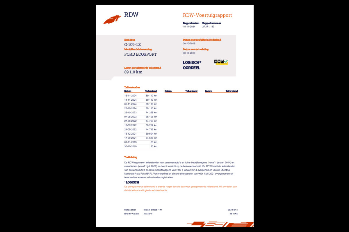 • Gecontroleerde kilometerstand (NAP).