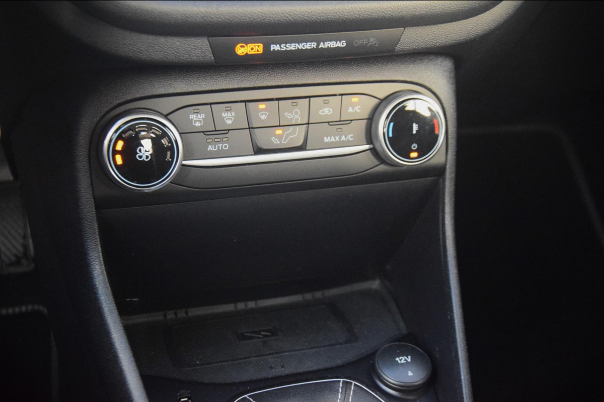 Zo'n lekkere jonge auto heeft natuurlijk leuke extra's, zoals remote services. Met een speciale app maakt u overal verbinding met de auto. Zo kunt u functies activeren en controleren. Het navigatiesysteem en het audiosysteem (met DAB-ontvangst!) bedient u met knoppen op het stuur of met gesproken commando's. Ook handig is de draadloze telefoonlader. Zonder snoeren en kabels uw smartphone bijtanken! Het spreekt voor zich dat een auto als deze ook van automatische airconditioning is voorzien. De meeste schade bij inparkeren komt van een randje of paaltje dat u even niet zag. Maar de parkeersensoren zien alles en waarschuwen op tijd. De uitrusting van deze Ford is met cruise control, centrale deurvergrendeling met afstandsbediening, boordcomputer en verstelbaar stuur behoorlijk compleet.