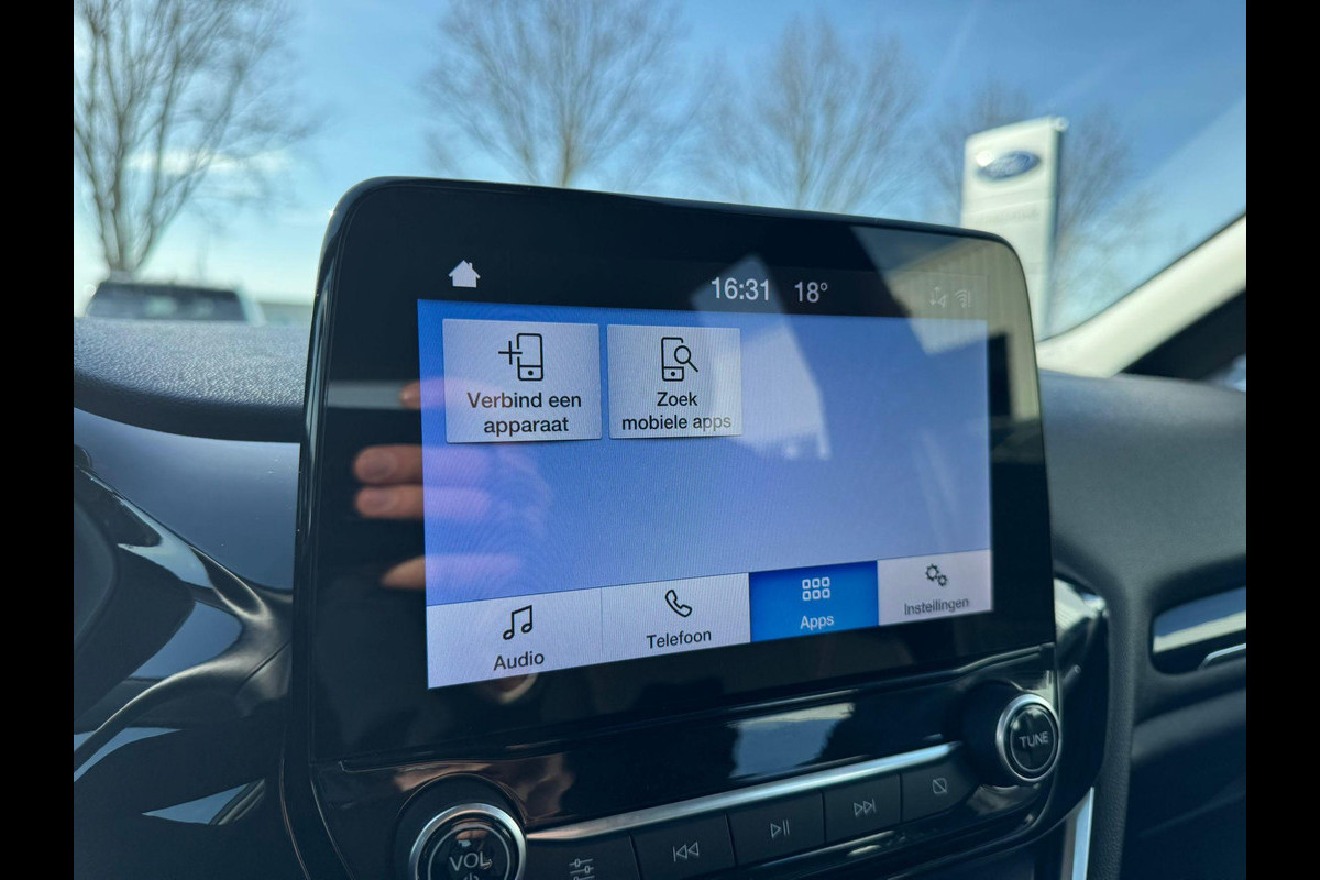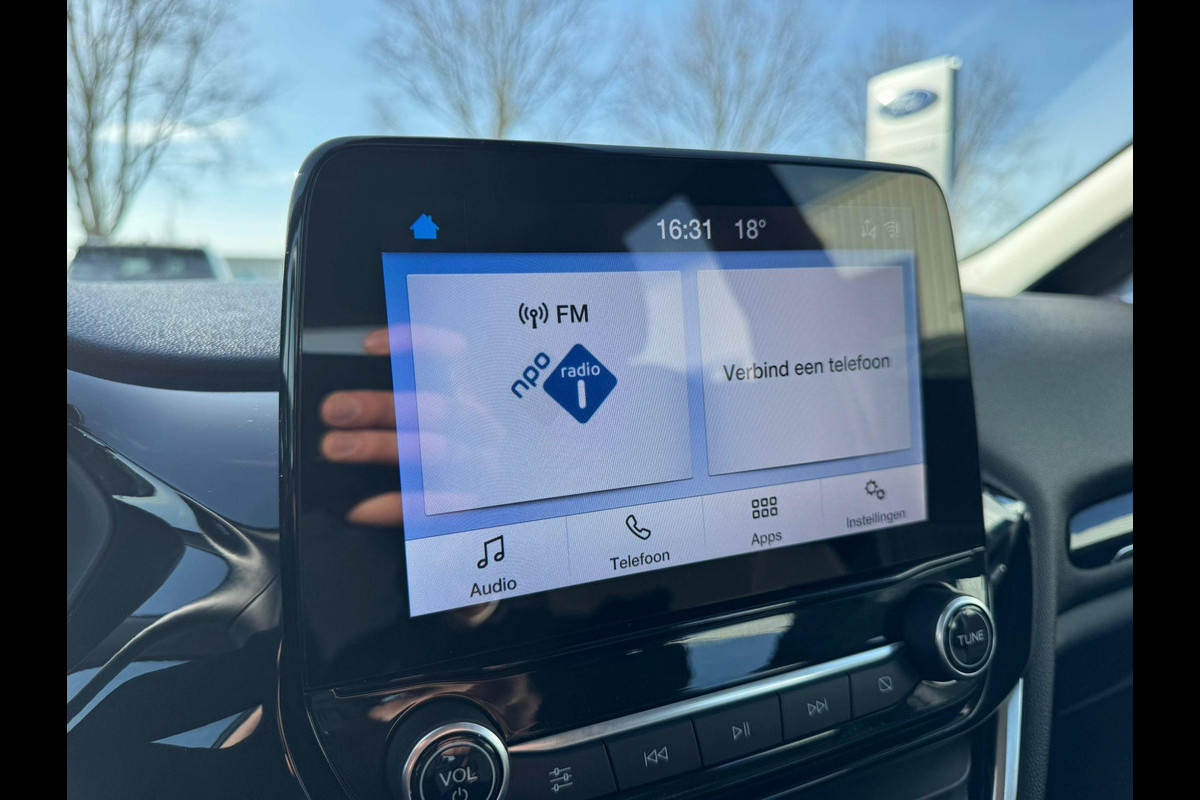 Zoals u van zo'n jonge auto mag verwachten, zijn hier ook de geavanceerde remote services aanwezig. Simpelweg met een app op uw smartphone controleert u op afstand de status van de auto en bedient u diverse functies. Kies de muziek waarvan u houdt, dankzij de DAB-radio klinkt het altijd geweldig. Intussen bedient u het audiosysteem met de knoppen op het stuur of met uw stem. Het spreekt voor zich dat een auto als deze ook van automatische airconditioning is voorzien. Inparkeren zonder angst voor schade. De parkeersensoren helpen u om moeiteloos in de kleinste parkeervakken te manoeuvreren. Het luxeniveau in deze Ford is niet alleen gericht op comfort, maar ook op uw veiligheid. Tal van sensoren helpen u om de omgeving in de gaten te houden. De automatisch inschakelbare verlichting zorgt dat automatisch de verlichting wordt ingeschakeld als het donker wordt, wat bijvoorbeeld in tunnels erg handig is. En de regensensor zet de ruitenwissers aan zonder dat u eraan hoeft te denken. Ook cruise control, automatisch dimmende binnenspiegel, centrale deurvergrendeling met afstandsbediening en boordcomputer horen tot de voorzieningen op deze auto.
