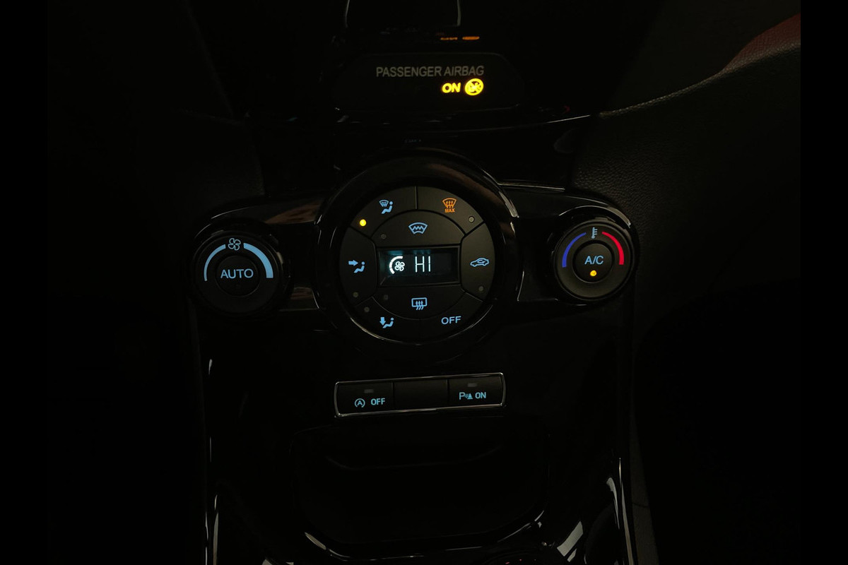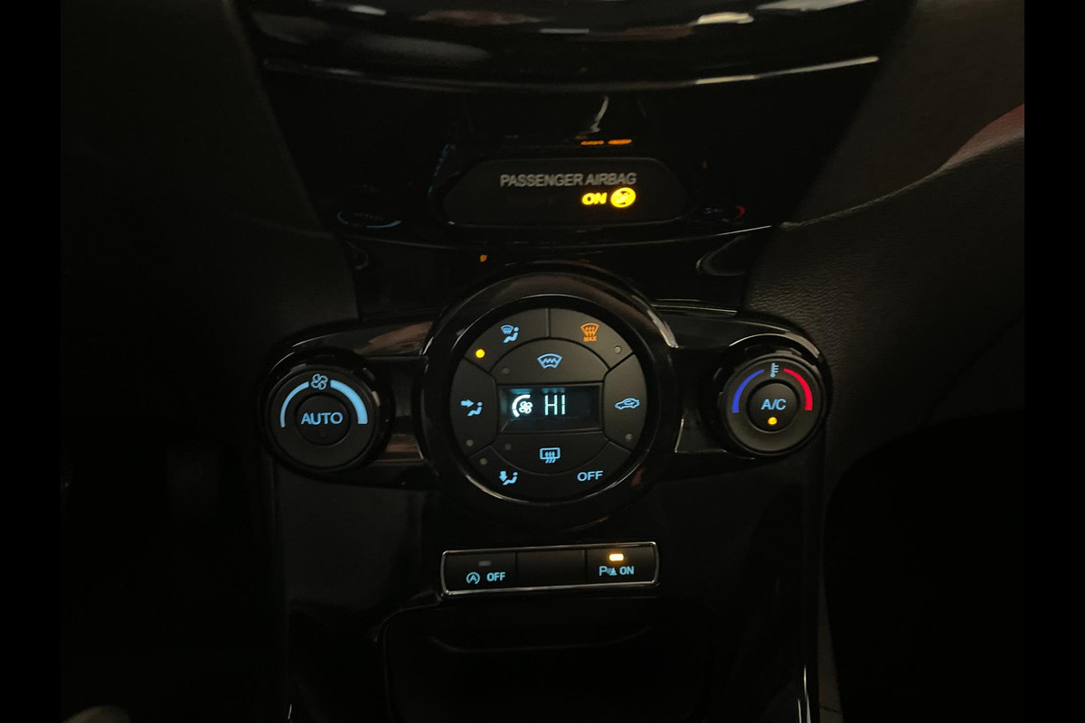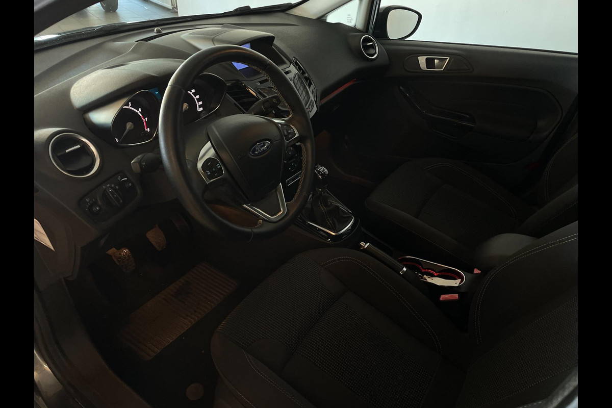 Ford Fiesta 1.0 Ecoboost Titanium 100pk. Zoek een compacte 5 deurs auto met pit en een sportieve uitstraling? En wil je graag veel opties? Een pittig rijkarakter? Dan heb je hem nu gevonden! Deze Ford Fiesta heeft het allemaal! De 1.0 benzine motor heeft een turbo en geeft hem lekker veel pit en je kan er ook nog steeds zuinig mee rijden. Airco met climate control, navigatie, Bluetooth, sportvelgen, sport interieur met led verlichting, in hoogte verstelbare bestuurdersstoel, elektrische spiegels, verlichting in de spiegels, parkeersensoren en zo gaat het nog wel even door met de vele opties die je kan vinden op deze sportieve Ford Fiesta. Door de pittige motor en de vele opties is het een genot om te rijden in deze auto. En wat je ook zal verbazen is de ruimte die je hebt in auto, zowel voor als achterin heb je voldoende ruimte. En dat allemaal voor zeer lage maandlasten, de wegenbelasting is slechts 35 euro per maand! De vorige eigenaar is er altijd erg zuinig op geweest, van binnen en buiten ziet de Ford er nog als nieuw uit! Nieuwsgierig geworden? Maak dan snel een afspraak voor de bezichtiging en de proefrit!