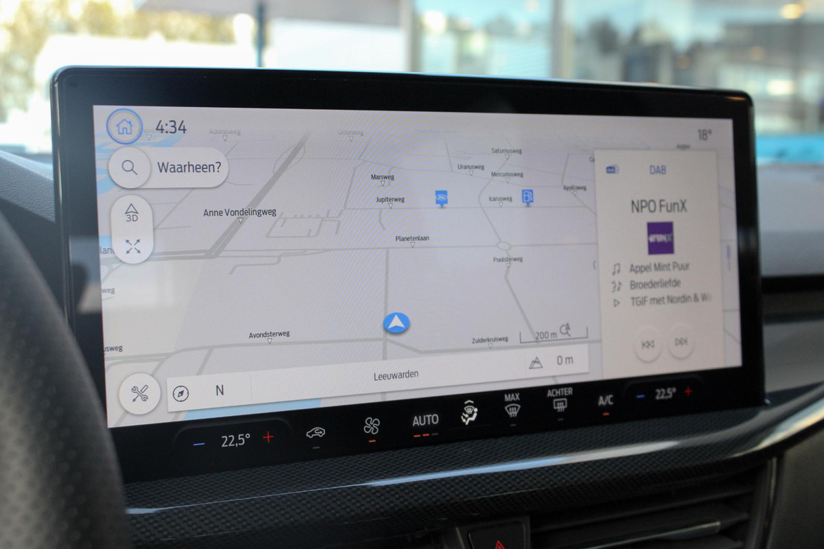 Locatie, motorconditie, storingen... via Connected Services krijgt u alle vitale info over de auto door. Ook handig bij pech! In deze auto wordt u elke rit opnieuw bijgestaan door een gebruiksvriendelijk full map navigatiesysteem, terwijl u luistert naar het glasheldere geluid van het audiosysteem met DAB-radio. Bij de luxe van deze auto hoort ook automatische airconditioning. Een plekje vinden in de binnenstad is één, inparkeren is twee. Voor dat laatste heeft deze Ford Focus prima parkeersensoren die u een handje helpen. Het hoort bij een intelligente auto als deze dat hij zelf in staat is om zijn omgeving in de gaten te houden. Dat doet deze Ford met een automatisch inschakelbare verlichting en een regensensor. Deze auto is voorzien van dashboard met spraakbediening, cruise control, sportstuurwiel, automatisch dimmende binnenspiegel en bagage afdekhoes.