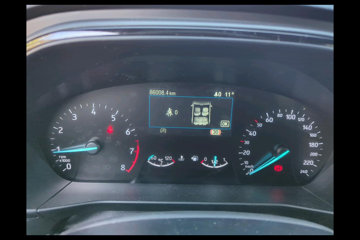Kinderfietsje niet gezien bij het inparkeren? Dat gebeurt u nooit meer. Daar zorgt de achteruitrijcamera wel voor! De conditie van deze auto is 24/7 inzichtelijk dankzij Connected Services. Voor een veilige rit is het belangrijk dat uw handen het stuur vasthouden en uw ogen gefocust blijven op de weg; daarom kunt u het audiosysteem, met DAB-ontvangst en full map navigatiesysteem bedienen met het stuurwiel of via spraakbediening. De kans op een kop-staart botsing wordt sterk gereduceerd door het systeem van achteropkomend verkeer waarschuwing. Natuurlijk is een complete auto als deze ook voorzien van sensoren die de omgeving in de gaten houden. Deze Ford heeft niet alleen een automatisch inschakelbare verlichting aan boord, maar ook een regensensor. En dan is deze auto ook nog eens voorzien van WIFI-hotspot, cruise control, sportstuurwiel, keyless entry, airconditioning en automatisch dimmende binnenspiegel.