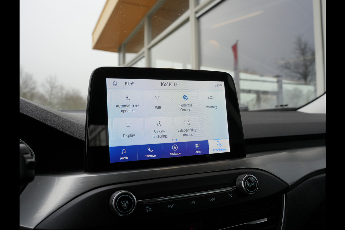 De ingebouwde Connected Services vertellen u via de app alles over de status van de auto. Locatie, onderhoudsstatus, brandstofpeil en nog veel meer! Een goede veiligheidsvoorziening is de spraakbediening en stuurbediening voor belangrijke functies. De auto is natuurlijk voorzien van een full map navigatiesysteem en het audiosysteem biedt glasheldere geluidskwaliteit dankzij DAB-ontvangst. Ook over uw schouder ziet u onderweg niet alles wat er aan de achterzijde gebeurt. Daarom heeft deze Ford Focus een achteropkomend verkeer waarschuwing. Dankzij automatische airconditioning is het interieur behaaglijk warm of verfrissend koel. Parkeerplekken worden er niet ruimer op. Maar met de aanwezige parkeersensoren krijgt u deze Ford Focus zonder problemen op z'n plaats. Natuurlijk behoren WIFI-hotspot, regensensor, cruise control, keyless entry, automatisch dimmende binnenspiegel en lederen stuur ook tot de uitrusting van deze complete auto.