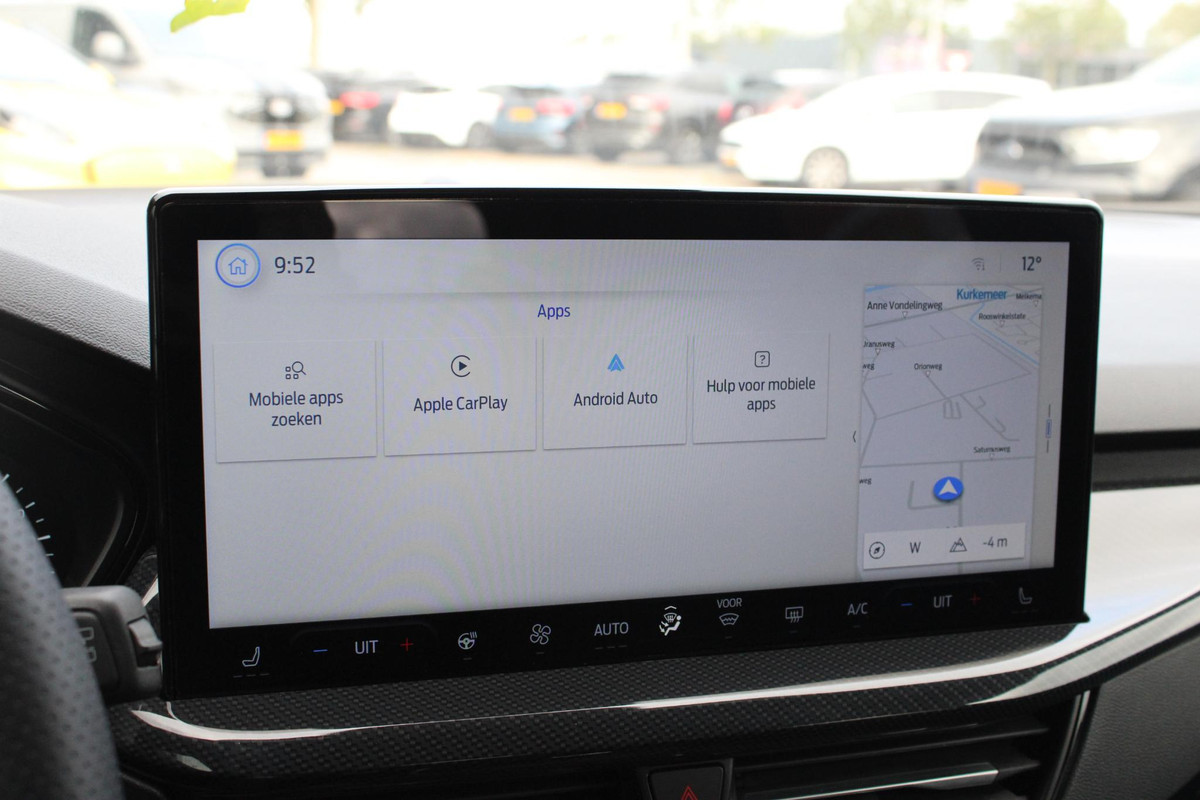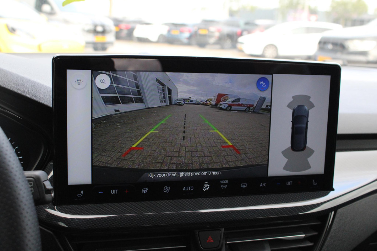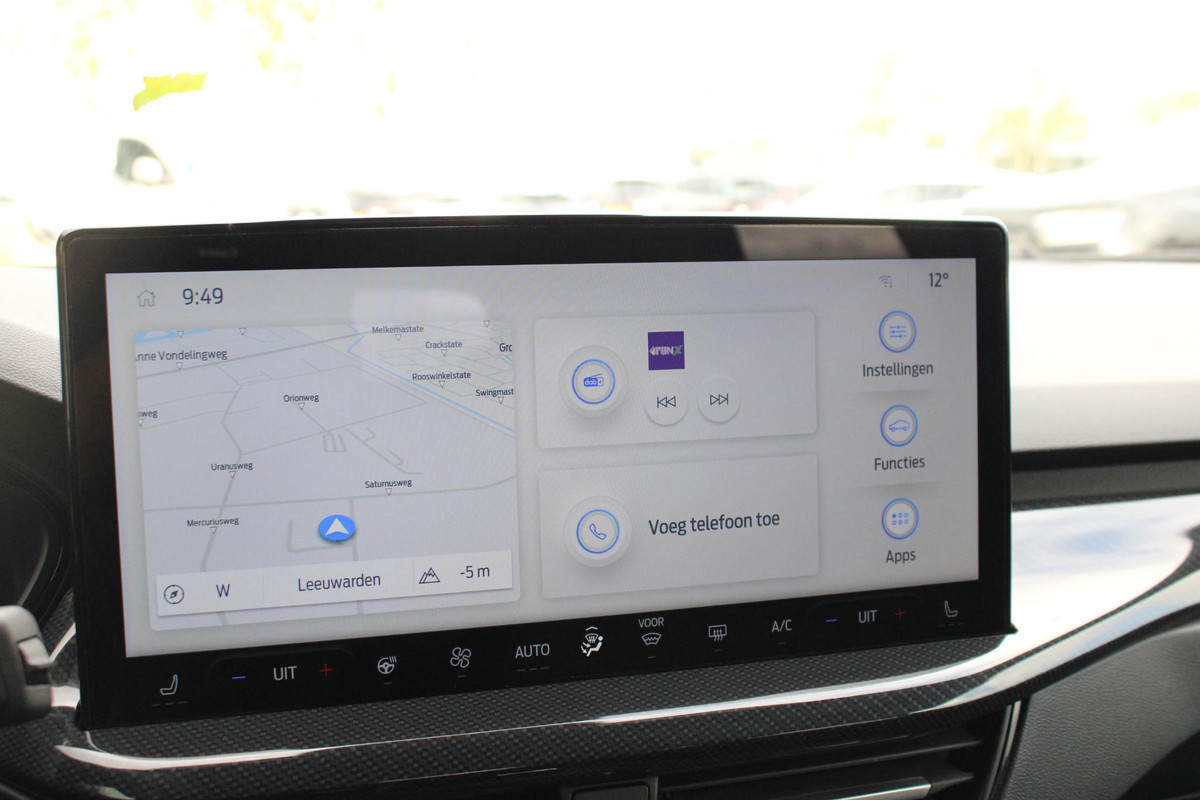 Adaptive cruise control is een comfortabele en veilige optie. Het systeem reguleert de snelheid en houdt automatisch afstand tot uw voorligger. Handig en veilig: Connected Services. Alle vitale functies en data van de auto checkt u via de app op uw smartphone. Het full map navigatiesysteem brengt u vlot naar uw bestemming, terwijl u luistert naar het glasheldere geluid van het audiosysteem met DAB-radio. Met de automatische airconditioning selecteert u de gewenste temperatuur. Het systeem doet de rest. Geen parkeervak is te klein dankzij de assistentie van de parkeersensoren. De Ford is standaard voorzien van: dashboard met spraakbediening, regensensor, automatisch dimmende binnenspiegel en bagage afdekhoes.