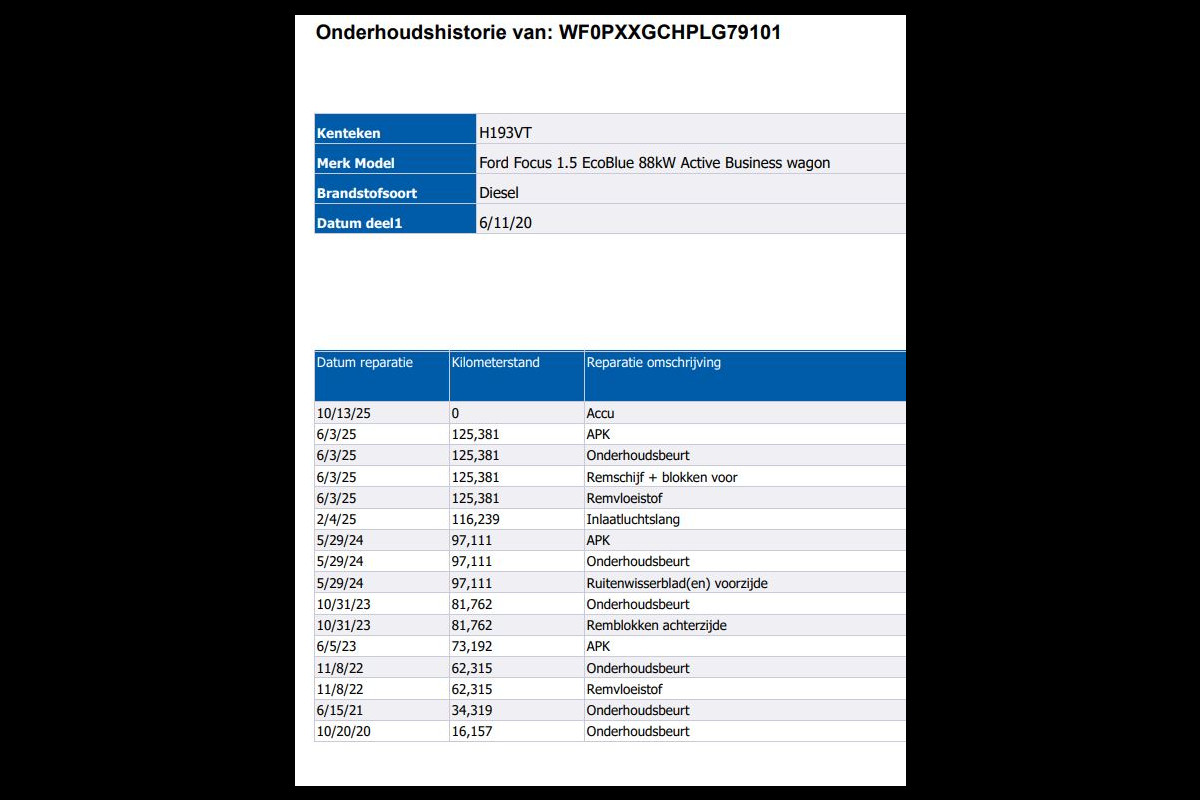 Onderhoudsboekjes: Aanwezig (dealer onderhouden)