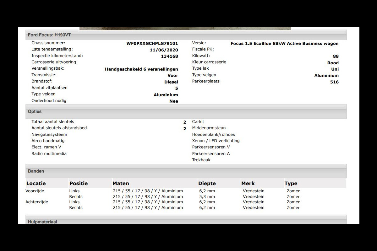 Het kan echter voorkomen dat uit de automatische voertuiginformatie een optie of accessoire naar voren komt die helaas toch niet op de auto aanwezig is.