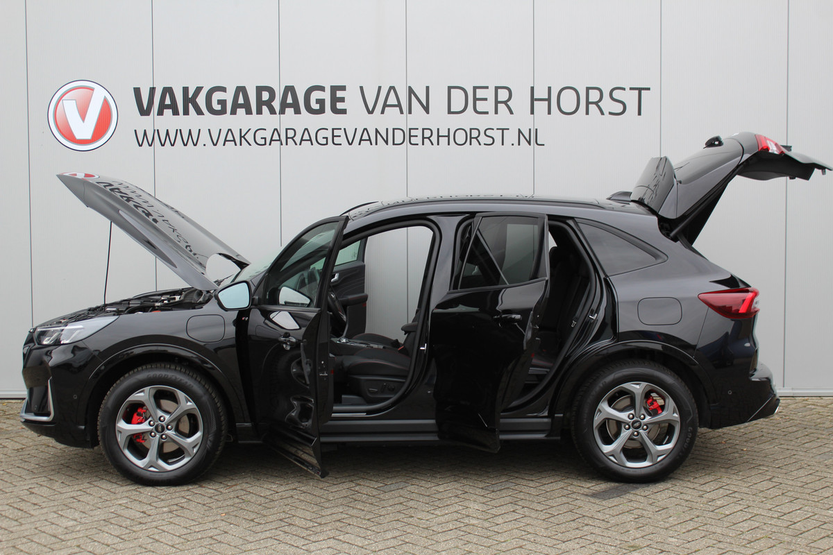 Ford Kuga 2.5-243pk PHEV ST-Line X. Trekgewicht 2.100kg. Nieuw Model ! Van €. 54.937,- voor €. 43.735,- Trekgewicht van 2.100kg ! Elektr. panodak., elektr. trekhaak, stoel-, stuur- en voorraamverw., 360gr. Camera, HUD, AppleCarplay/Androidauto, Elektr. verstelb. comfortstoelen, LED verl.