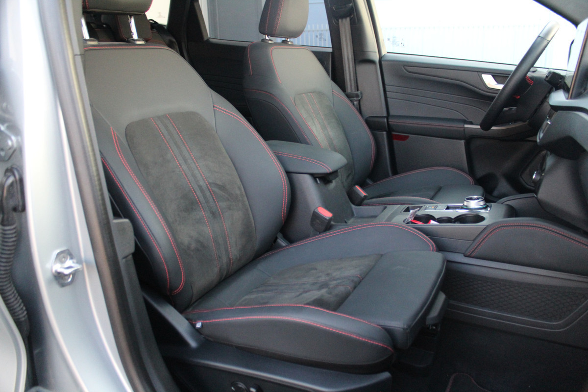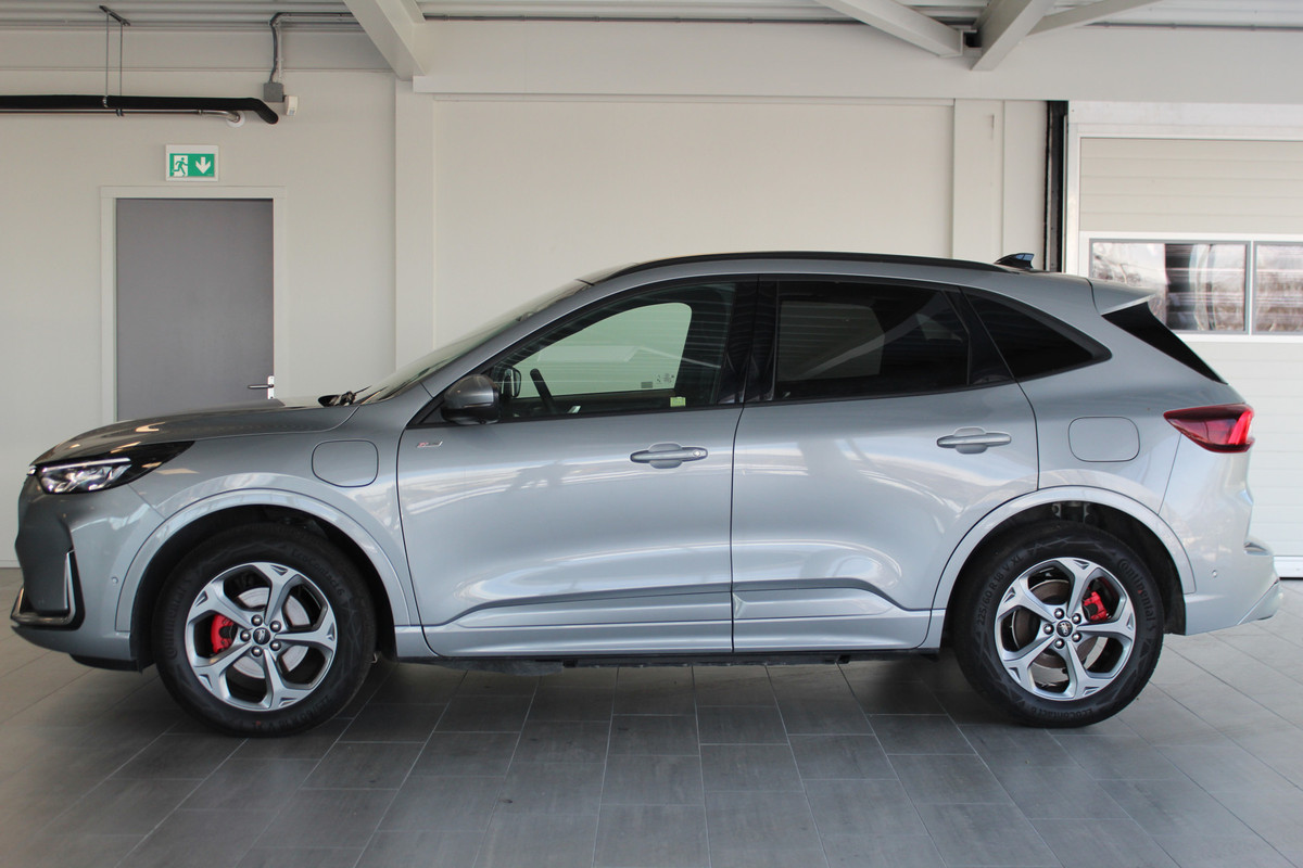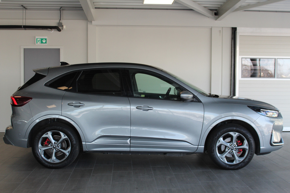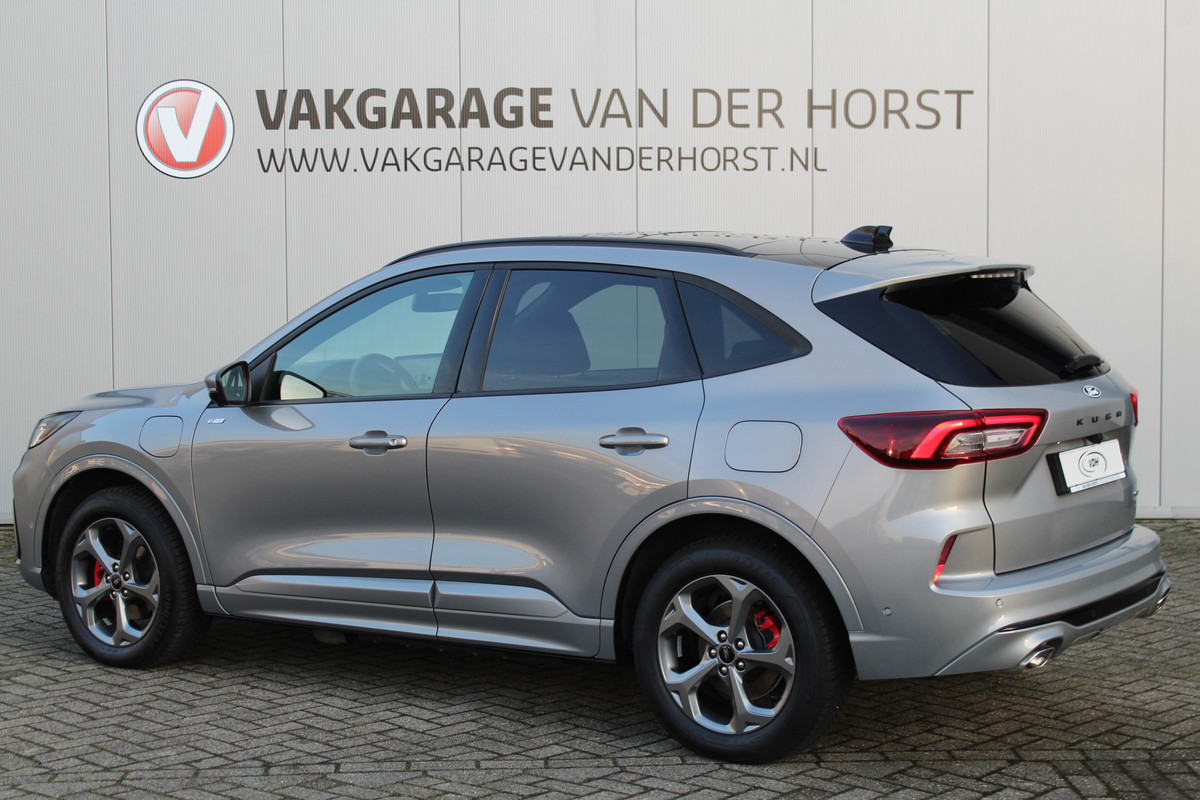 Ford Kuga 2.5-243pk PHEV ST-Line X. Van €. 54.937,- voor €. 43.735,- Trekgewicht van 2.100kg ! Elektr. panodak., elektr. trekhaak, stoel-, stuur- en voorraamverw., 360gr. Camera, HUD, AppleCarplay/Androidauto, Elektr. verstelb. comfortstoelen, LED verl.