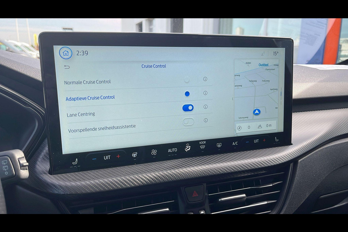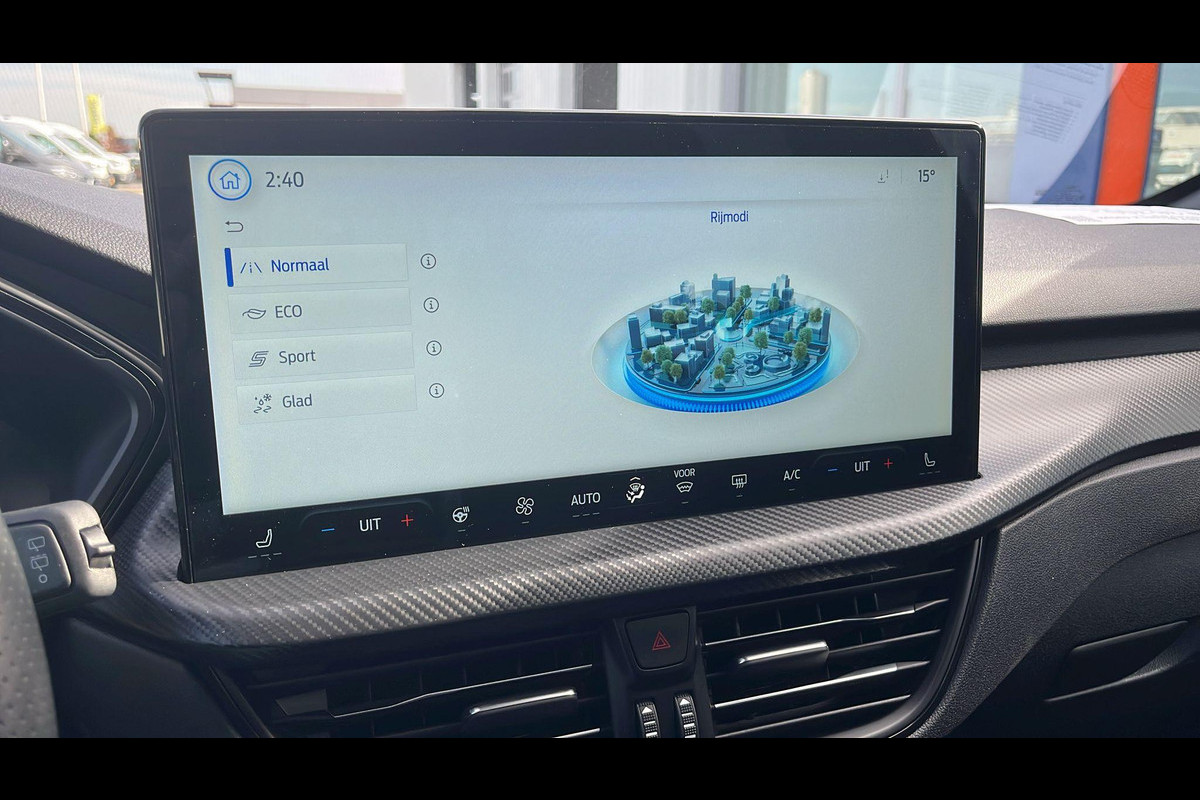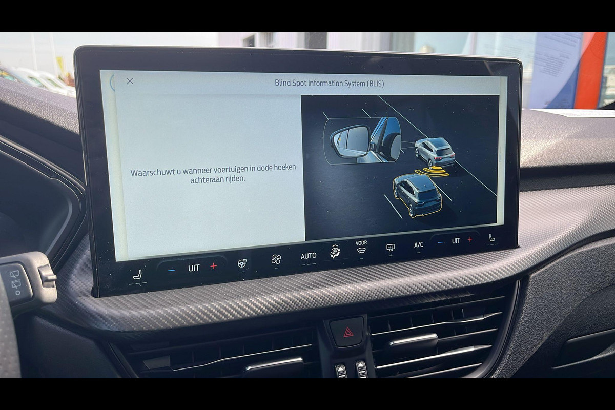Deze Ford is voorzien van verschillende intelligente veiligheidsvoorzieningen. Ze kijken tijdens het rijden als het ware met u mee, ze signaleren potentieel gevaarlijke situaties en in een aantal gevallen kunnen ze ook ingrijpen. U hoeft uw ogen niet meer van de weg te halen om dashboardinformatie te checken. De head-up display projecteert het rechtstreeks in uw zichtveld. Verkeersbord-detectie herkent verkeersborden en toont deze op het instrumentarium van de auto. Voorzien van het Lane-keeping systeem. Ofwel: blijf automatisch in je baan. De auto is ook uitgerust met dodehoekdetectie, forward collision warning system, hill hold functie, vermoeidheidsherkenning, autonoom remsysteem en bandenspanningcontrolesysteem.