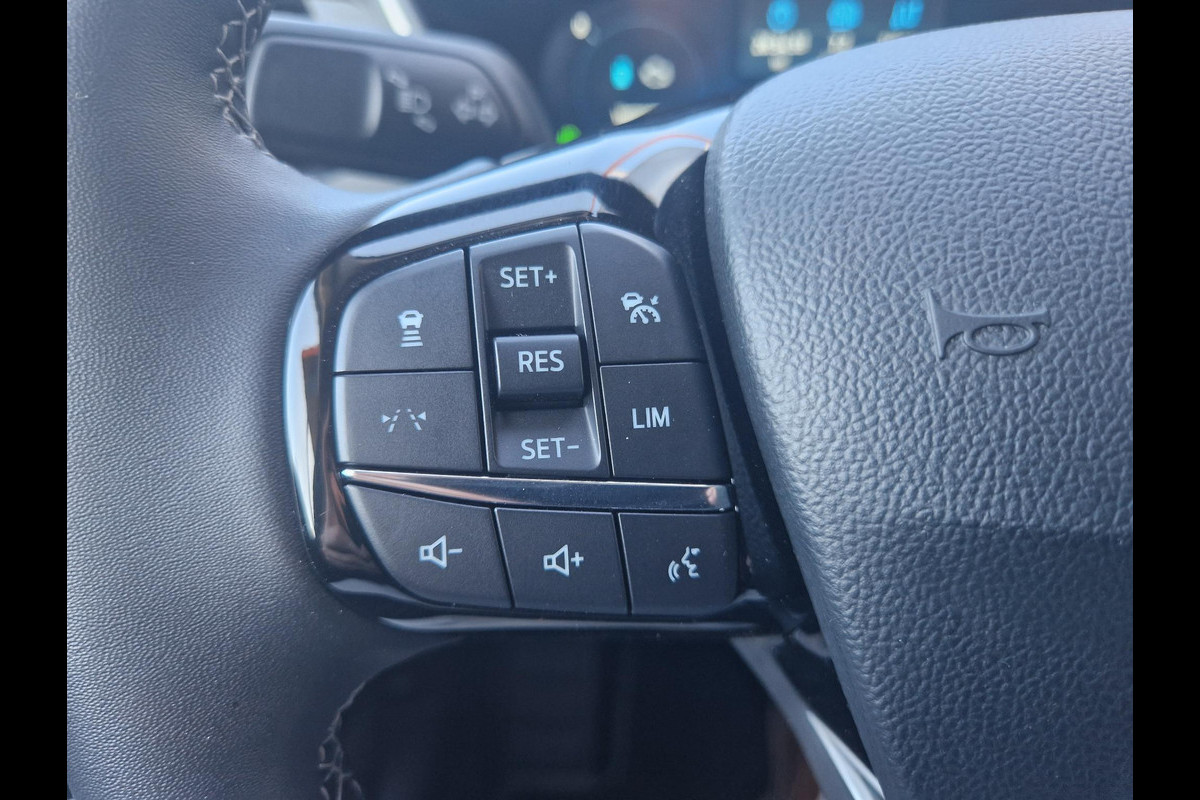 Met het digitale dashboard van deze auto is de aanpassing van uw cockpitinterface een fluitje van een cent. Met de 360 graden camera kunt u elk detail rond de auto zien, waardoor mogelijke schade door verkeerd inschatten van afstanden vermeden wordt. Adaptive cruise control is een comfortabele en veilige optie. Het systeem reguleert de snelheid en houdt automatisch afstand tot uw voorligger. Bedient u de auto liever met uw stem? Dan is het goed om te weten dat spraakbediening aanwezig is. De ingebouwde Connected Services vertellen u via de app alles over de status van de auto. Locatie, onderhoudsstatus, brandstofpeil en nog veel meer! Deze Ford is voorzien van premium audiosysteem, full map navigatiesysteem, kruisend verkeer detectie, automatische airconditioning, draadloos opladen en DAB ontvangst.