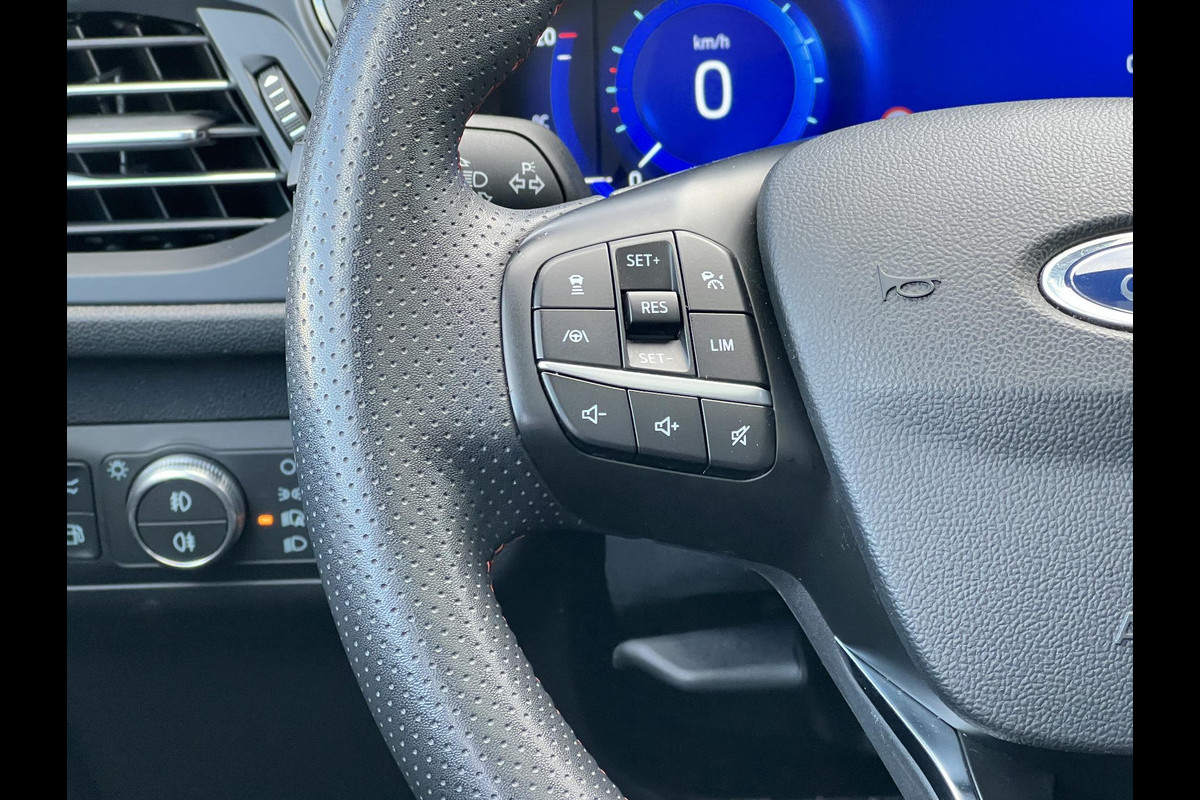 Het digitale dashboard is niet alleen enorm fraai en handig, maar draagt actief bij aan een veilige en slimme rit. Ook achter de auto geen verrassingen bij het inparkeren. Daarvoor zorgt de achteruitrijcamera. Adaptive cruise control is een comfortabele en veilige optie. Het systeem reguleert de snelheid en houdt automatisch afstand tot uw voorligger. Als u regelmatig met een aanhanger of een fietsendrager op pad bent, is de afneembare trekhaak een praktische extra. Deze auto gaat met u in gesprek. Hij vertelt u dankzij remote services alles over de status van diverse onderdelen en laat zich desgevraagd ook activeren. Gewoon via uw smartphone. Deze Ford is voorzien van dashboard met spraakbediening, premium audiosysteem, full map navigatiesysteem, automatische airconditioning, DAB ontvangst en regensensor.