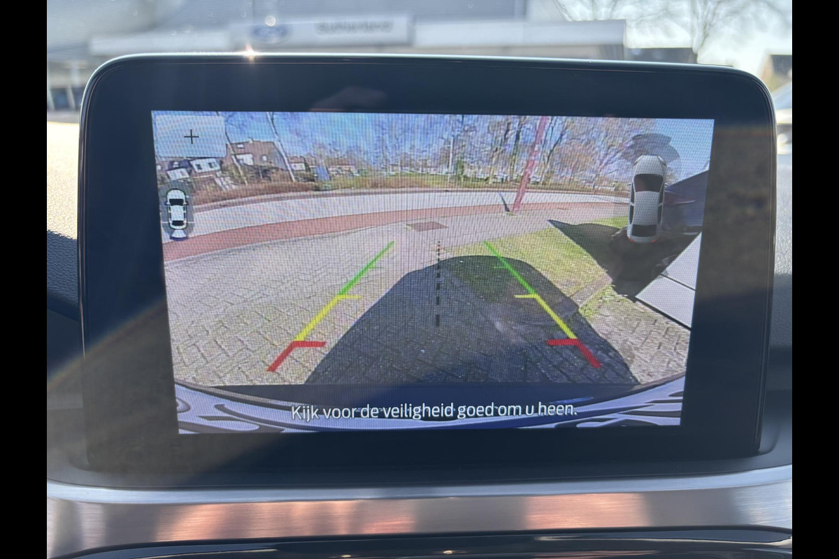 Zoals u mag verwachten van deze Ford Kuga is hij uitgerust met een reeks aan actieve veiligheidssystemen. Verkeersbord-detectie herkent verkeersborden en toont deze op het instrumentarium van de auto. Het Lane-keeping systeem let constant op en waarschuwt of corrigeert als u onoplettend over de lijnen van de rijstrook gaat. Forward collision warning waarschuwt bij een dreigende aanrijding met een voorligger. Bovenop deze veiligheidsfeatures heeft deze Ford bovendien dodehoekdetectie, hill hold functie, vermoeidheidsherkenning, autonoom remsysteem en bandenspanningcontrolesysteem.