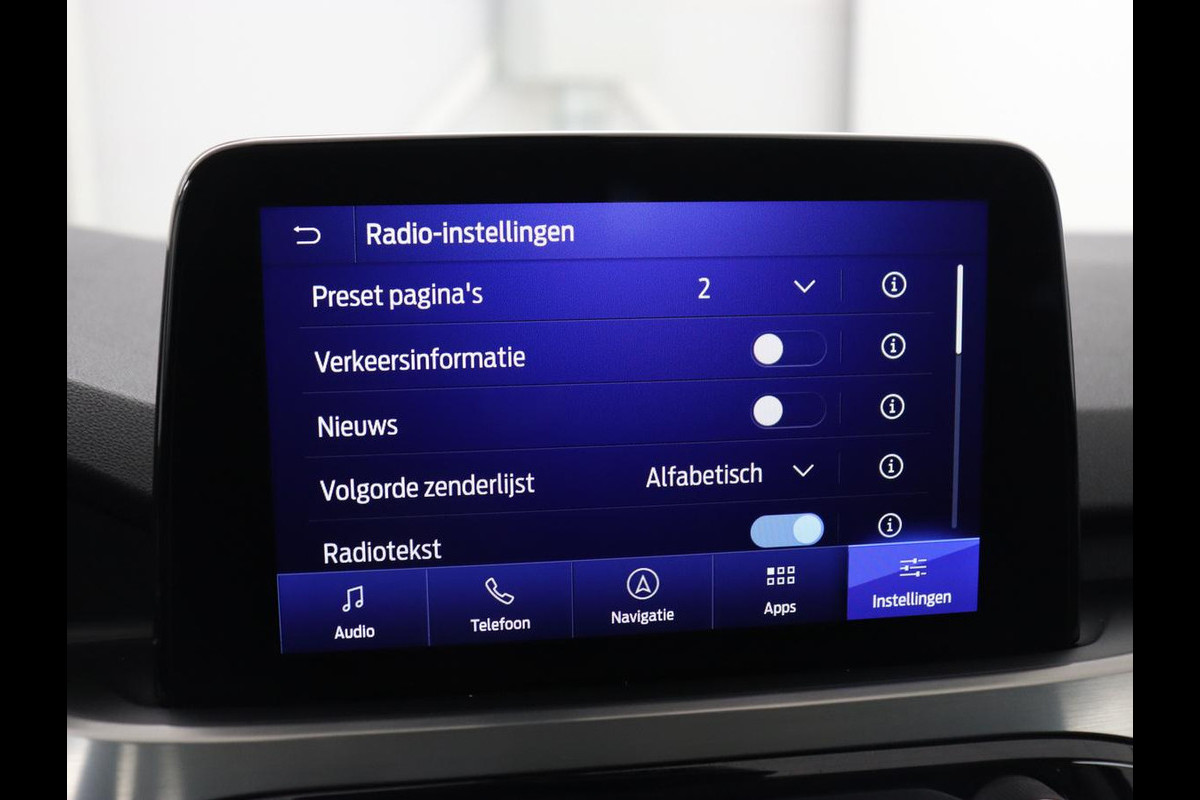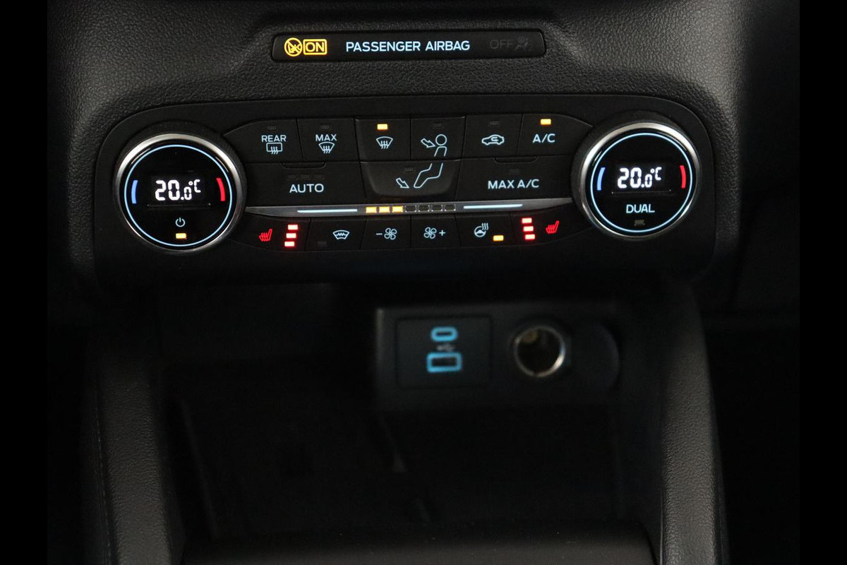Het eigentijdse interieur wordt natuurlijk helemaal volmaakt met het digitale dashboard. Een handige optie is de achteruitrijcamera. Achteruitrijden, inparkeren en manoeuvreren gaat gemakkelijker dan ooit. Als u de adaptive cruise control inschakelt, regelt de auto zelf de snelheid en de afstand tot de auto voor u. Zoals u van zo'n jonge auto mag verwachten, zijn hier ook de geavanceerde remote services aanwezig. Simpelweg met een app op uw smartphone controleert u op afstand de status van de auto en bedient u diverse functies. De bediening van het audiosysteem en het full map navigatiesysteem gebeurt met knoppen op het stuur en als u wilt zelfs met uw stem. De audio is overigens voorzien van DAB-radio voor een altijd heldere ontvangst. Deze Ford is voorzien van automatische airconditioning, draadloos opladen, regensensor, keyless entry, automatisch dimmende binnenspiegel en boordcomputer.