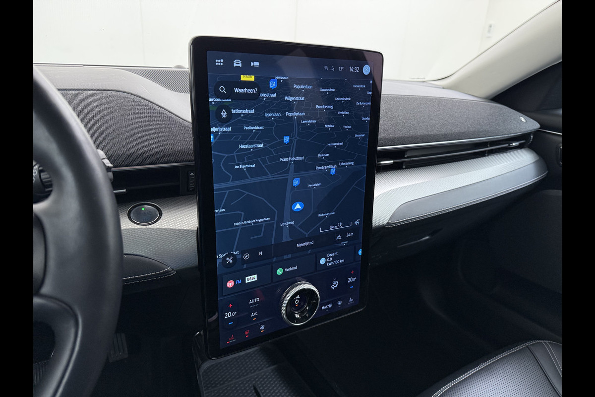 Mach-E RWD 75kWh Leer (semi-)Autopilot PanoDak Trekhaak 360°Topview-Camera Adaptive-Cruise-Control Apple Carplay B&O®-Hifi 18" E DAB Lane-Assist Keyless-go Autonomous Emergency Braking ESP ASR Verkeersbordherkenning Vermoeidheidsherkenning Dodehoek-Detector 1e Eigenaar Origineel Nederlandse Auto Nieuwprijs €50.424