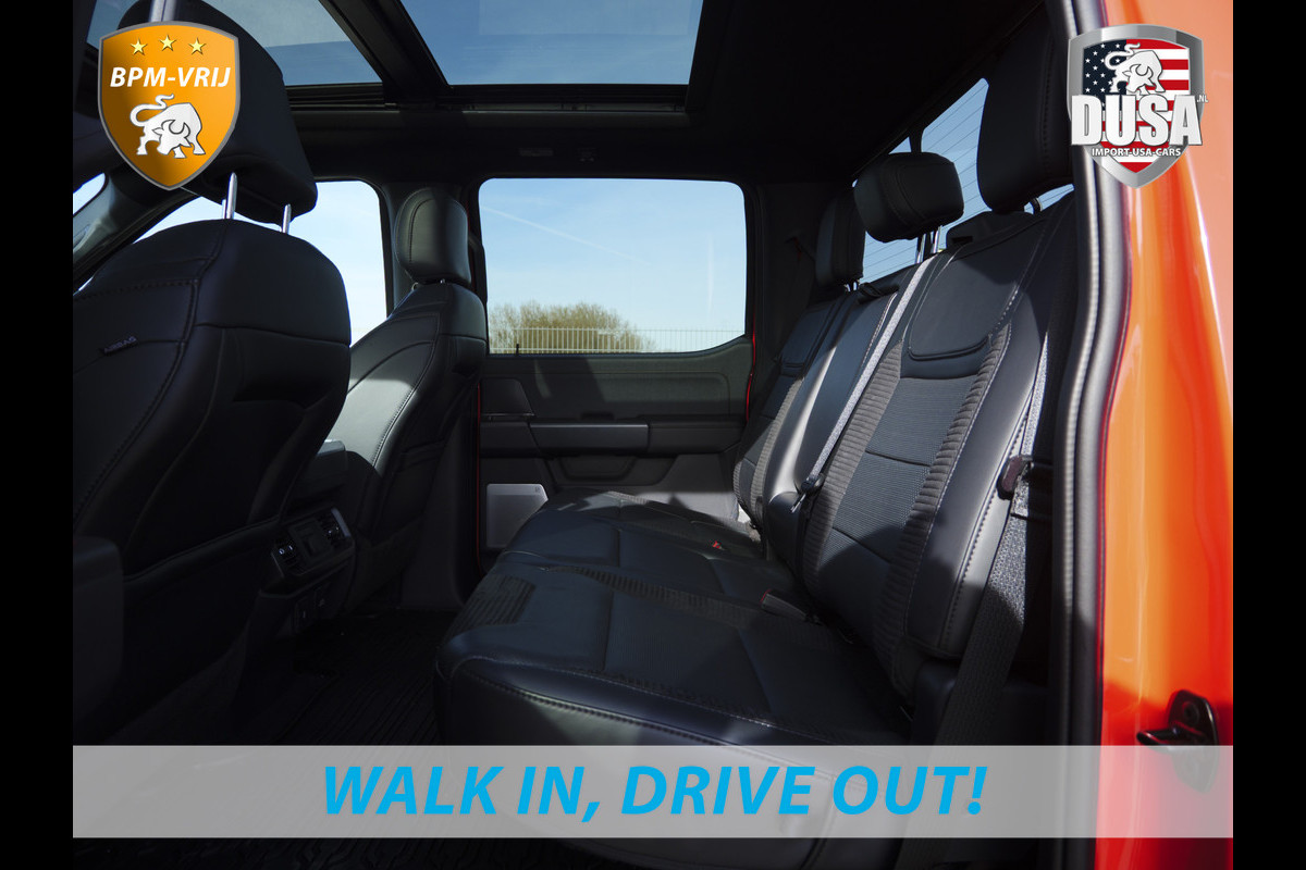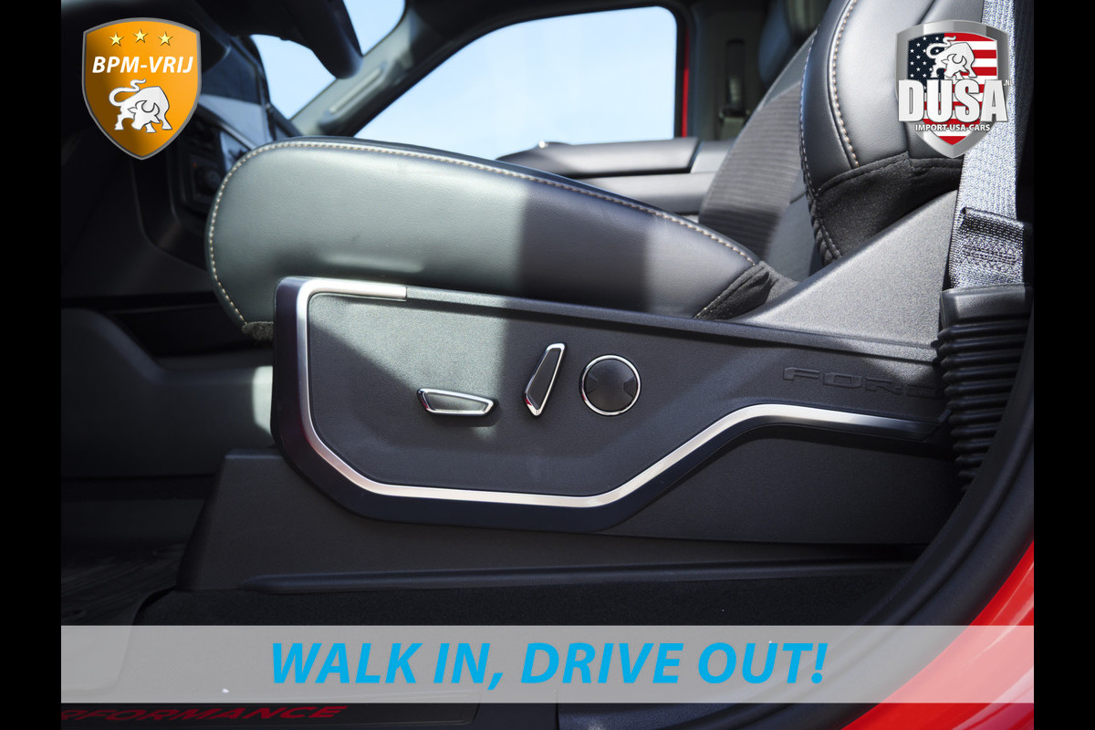 Bij het ontwerpen van de Ford RAPTOR stonden uw comfort en uw veiligheid centraal. Deze nieuwe auto is nu uit voorraad leverbaar. Hij heeft een benzinemotor en een automatische transmissie. De hoogwaardige, lederen bekleding benadrukt de kwaliteit van deze auto. Zit u goed? De stoelen zijn eenvoudig instelbaar dankzij de elektrische bediening met geheugen. Met het grote glazen panoramadak voelt het alsof u in een cabrio zit. Beknibbelen op comfort is er niet bij met deze Ford RAPTOR. Hij is zelfs voorzien van een verwarmd stuurwiel! Tot de uitrusting behoren ook zwarte hemelbekleding, getint glas, in delen neerklapbare achterbank, treeplanken en LED-achterlichten.
