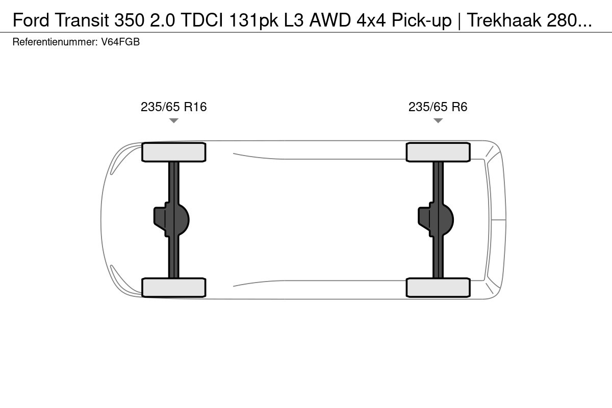 350 2.0 TDCI 131pk L3 AWD 4x4 Pick-up | Trekhaak 2800KG | 3.66m laadbak | Airco | Cruise | Bluetooth | 1179KG laden