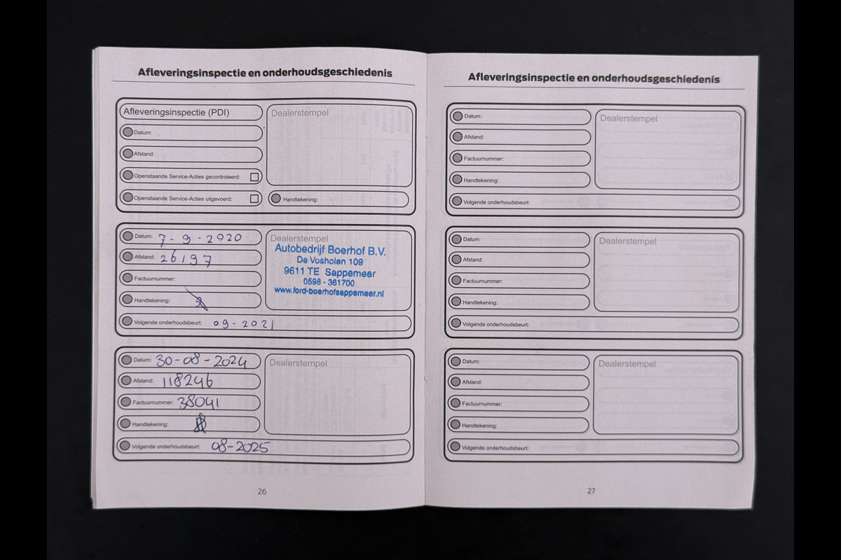 Onderhoudsboekjes: Aanwezig