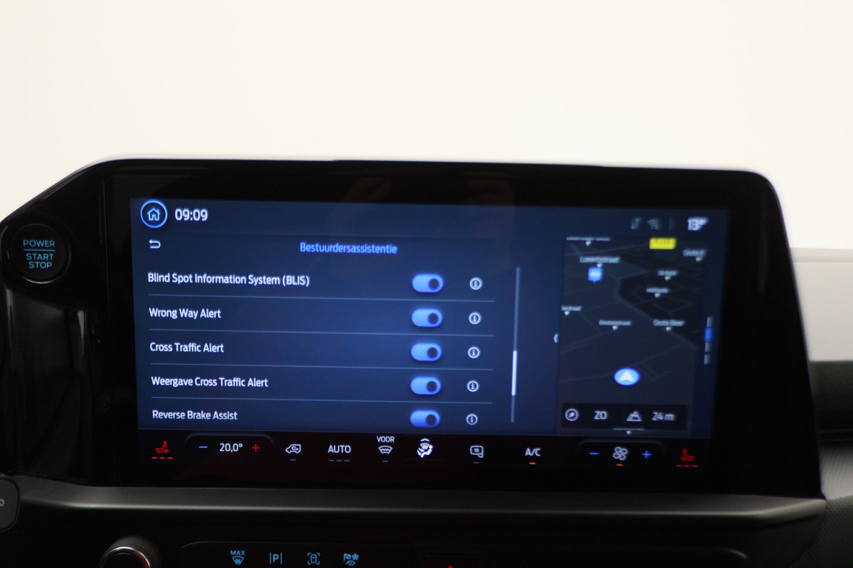 Via het digitale dashboard bent u permanent op de hoogte van alle informatie die u nodig heeft voor een veilige rit. Wat een gemak, die achteruitrijcamera. Alles in beeld zonder capriolen. Adaptive cruise control is een comfortabele en veilige optie. Het systeem reguleert de snelheid en houdt automatisch afstand tot uw voorligger. Had u de auto nou wel afgesloten? Met Connected Services checkt u het overal en altijd. Onderweg kunt u veilig genieten van het audio-installatiesysteem met DAB-radio en het App-connect navigatiesysteem. Want in deze Ford bedient u ze vanaf het stuurwiel. U bent in deze Ford ook voorzien van WIFI-hotspot, automatische airconditioning, regensensor, keyless entry, buitentemperatuurmeter en lederen stuur.