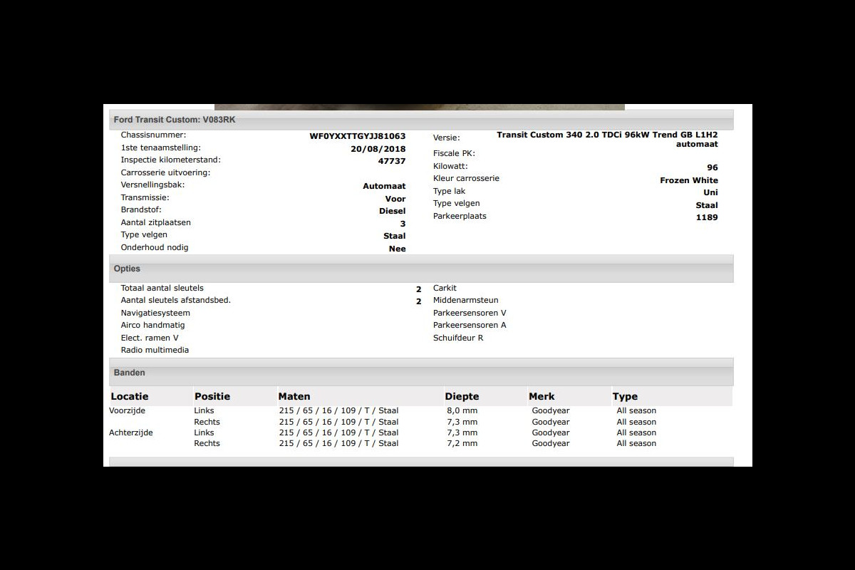 Het kan echter voorkomen dat uit de automatische voertuiginformatie een optie of accessoire naar voren komt die helaas toch niet op de auto aanwezig is.