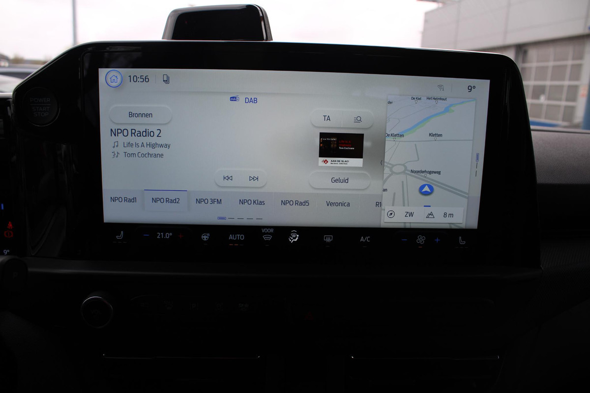 Met de nieuwste technologieën aan boord is deze Ford in staat om zelf te reageren op potentieel gevaarlijke situaties op de weg. De actuele snelheidslimiet, een inhaalverbod en andere verkeersborden; de verkeersborddetectie ondersteunt u tijdens elke rit. Het Lane-keeping systeem registreert permanent of u binnen de lijnen van de rijstrook blijft; dwaalt u onbedoeld af, dan waarschuwt het systeem en corrigeert de koers. Veilig inhalen en invoegen wordt bevorderd door de actieve dodehoekdetectie. De veiligheid van deze auto wordt verder verhoogd door forward collision warning system, hill hold functie, vermoeidheidsherkenning, autonoom remsysteem en bandenspanningcontrolesysteem.