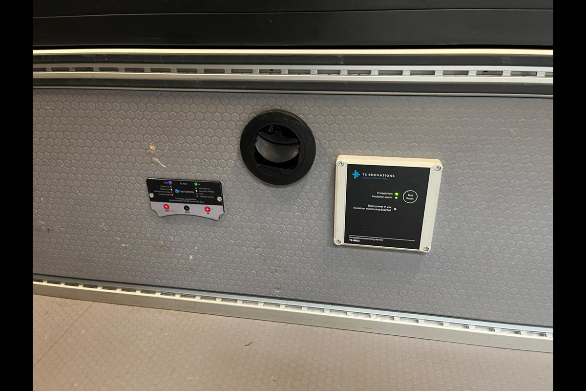- Stroom op locatie verschillende v230 stopcontacten en 12v aansluitingen doormiddel van een Victron omvormer 12volt voor 230v / 220v extra accu. Deze wordt geladen als de bus rijd.
