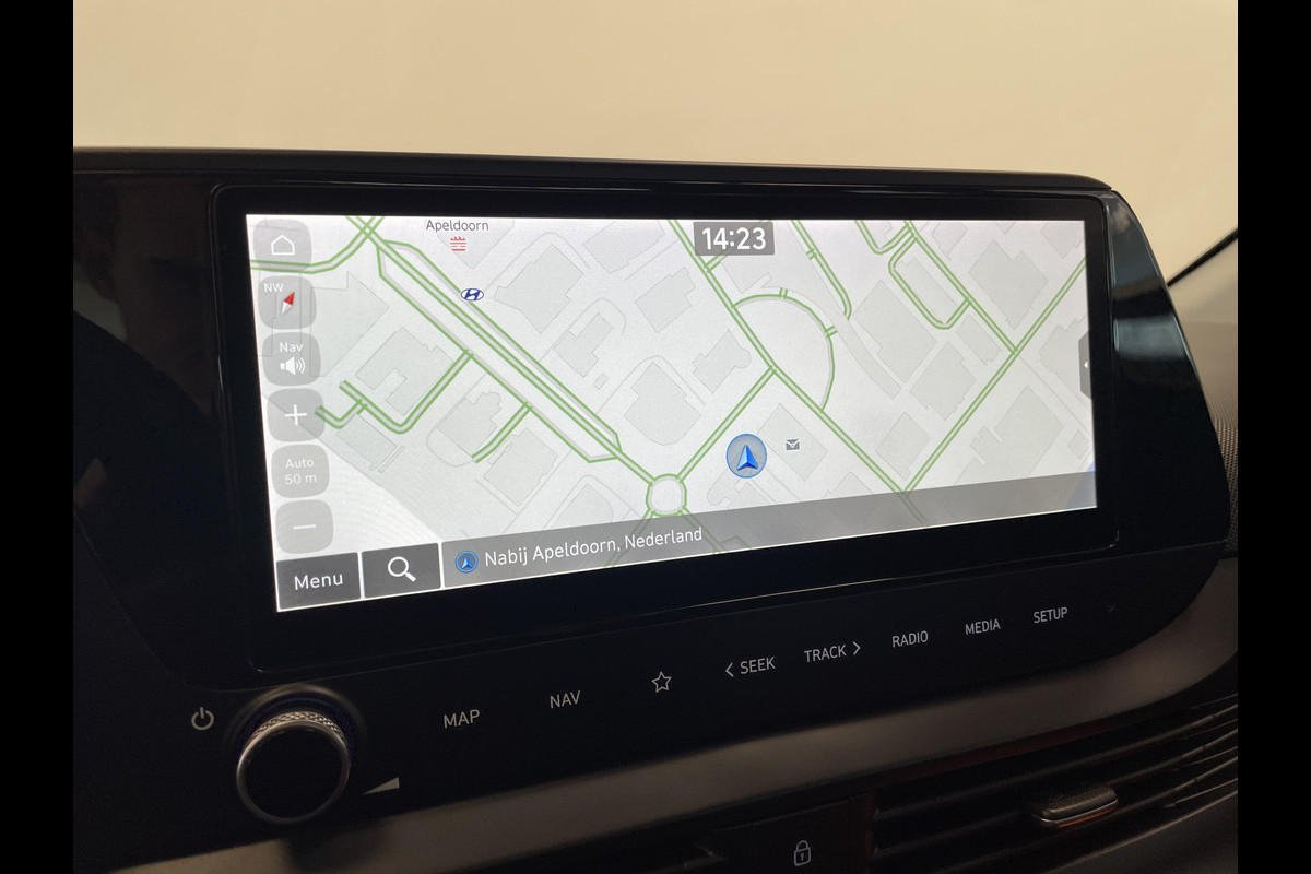 Het digitale dashboard rekent mee, denkt mee en rijdt mee. Alle info overzichtelijk in beeld, overal. Met behulp van de achteruitrijcamera kunt u zo strak inparkeren als u maar wilt! Praat tegen deze auto en de auto doet wat u wilt dankzij de ingebouwde spraakbediening. Met uw smartphone maakt u overal contact met de auto. Remote services geven direct inzicht in uiteenlopende functies en zijn op afstand te activeren. Met de routebegeleiding van het full map navigatiesysteem kunt u zich volledig op het verkeer concentreren. U bent in deze Hyundai ook voorzien van draadloos opladen, DAB ontvangst, cruise control, airconditioning, automatisch dimmende binnenspiegel en lederen stuur.