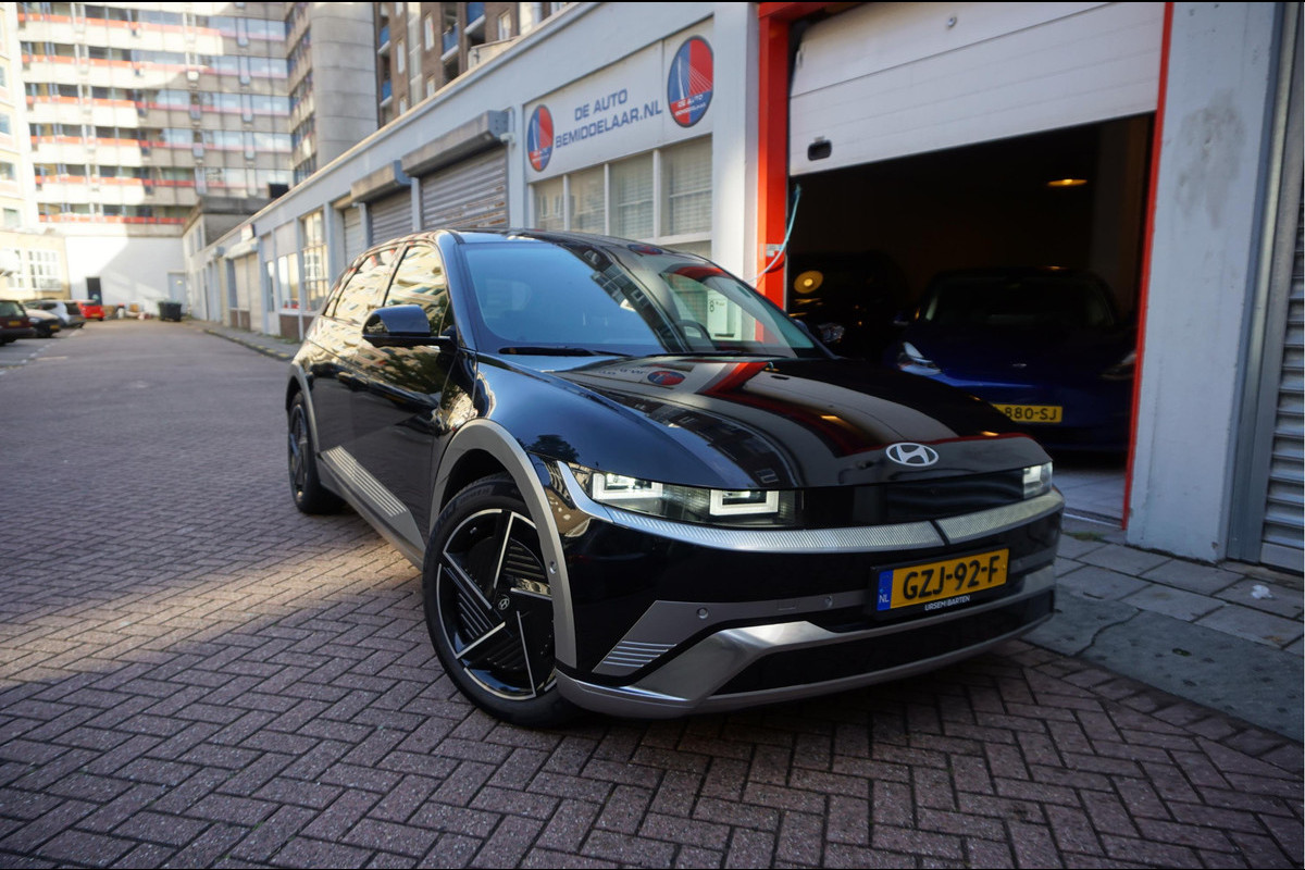 Hyundai IONIQ 5 84 kWh Lounge | BTW incl. | Nieuwprijs ca € 57.200,- | Fabrieksgarantie 12/2029 | Accugarantie 12/2032 of 160.000km | Vollederen interieur | Electrisch bedienbare stoelen met geheugen, stoelverwarming en stoelventilatie | Verwarmd stuurwiel | Head Up Display | Adaptieve cruise control + Lane departure met stuurcorrectie | Sfeerverlichting | APPLE Carplay/ Android Auto | Premium audio met DAB | 360 (TOPVIEW) camera | Virtual cockpit | achterbank elektrisch neerklapbaar, achterbank in delen neerklapbaar, achterruitverwarming, achterstoelen elektrisch verstelbaar, achterstoelen verwarmd, achteruitrij assistent, adaptief demping systeem, airco automatisch, alarm klasse 1(startblokkering), Anti Blokkeer Systeem, Apple Carplay/Android Auto, armsteun voor, audio installatie premium, automatische snelheidsbegrenzing ISA, autonome parkeerfunctie, Autonomous Emergency Braking, bagagedek, bagage-scheidingsnet, bandenspanningscontrolesysteem, bestuurdersairbag, binnenspiegel automatisch dimmend, Bluetooth, bots waarschuwing systeem, buitenspiegels elektrisch inklapbaar, buitenspiegels elektrisch verstel- en verwarmbaar, buitenspiegels in andere kleur, connected services, cruise control adaptief met Stop&Go en stuurhulp, DAB, dakspoiler, dimlichten automatisch, dodehoekdetectie met correctie, draadloze telefoonlader, elektrisch bedienbare achterklep, elektrisch verstelb. bestuurdersstoel met geheugen, elektrisch verstelb. passagiersstoel met geheugen, elektrische ramen voor en achter, Elektronisch Stabiliteits Programma, extra getint glas achter, geluidsisolerend glas, grootlichtassistent, head-up display, hill hold functie, hoofd airbag(s) achter, hoofd airbag(s) voor, interieur voorverwarming/(koeling), keyless entry, keyless start, kruisend verkeer detectie, LED achterlichten, LED dagrijverlichting, LED koplampen, lederen bekleding, lendesteun(en) elektrisch verstelbaar, lichtmetalen velgen 20inch, metaalkleur, motorgeluid simulator, multimedia scherm standaard, multimedia-voorbereiding, navigatiesysteem full map, oplaadmogelijkheid, parkeersensor achter, parkeersensor voor, passagiersairbag, regensensor, rijstrooksensor met correctie, rondomzicht camera, schakelpaddles, spraakbediening, stuur leder, stuur multifunctioneel, stuur verstelbaar, stuur verwarmd, stuurbekrachtiging, Vehicle-to-load , verlichte grille/strip, vervolgbotsing preventie, volledig digitaal instrumentenpaneel, voorstoelen in hoogte verstelbaar, voorstoelen verwarmd en geventileerd, warmtepomp, warmtewerende achterruit, warmtewerende voorruit, zelfstandige rijstrookwissel, zij airbag(s) voor, zonnescherm zijruiten.
