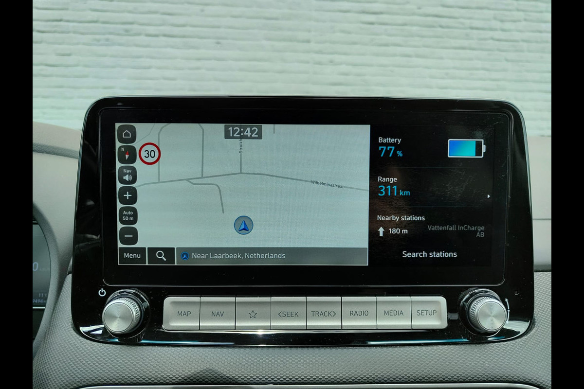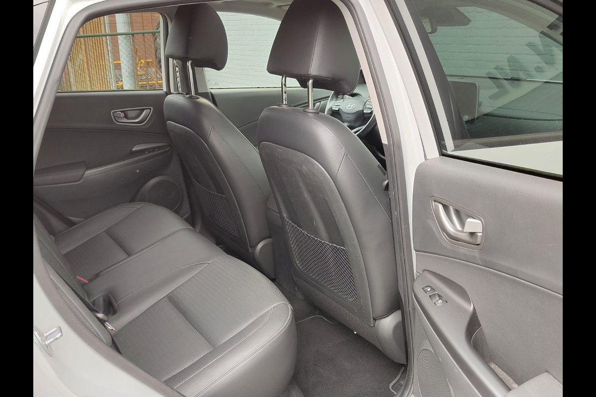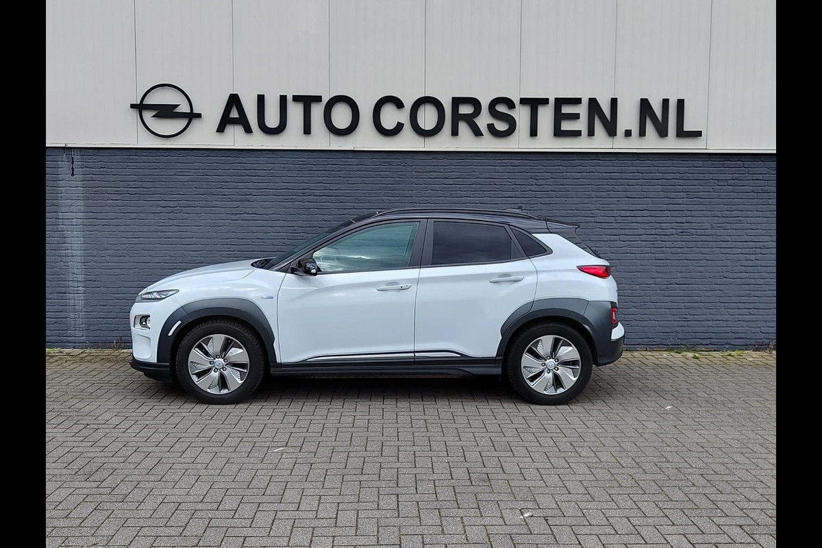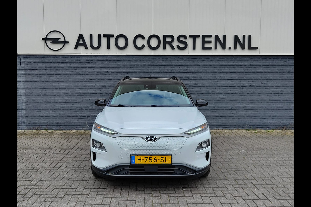 Hyundai Kona EV 64kWh 204pk SOH 100% Leer Premium Schuif-/Kanteldak Warmtepomp Head-Up Display Apple Carplay Android Navi Camera Elektr.Stoel Pdc Subwoofer Bluetooth Dodehoek detector Privacy Glas Rijstrooksensor 1e Eigenaar Origineel Nederlandse Auto Volledig Dealeronderhouden