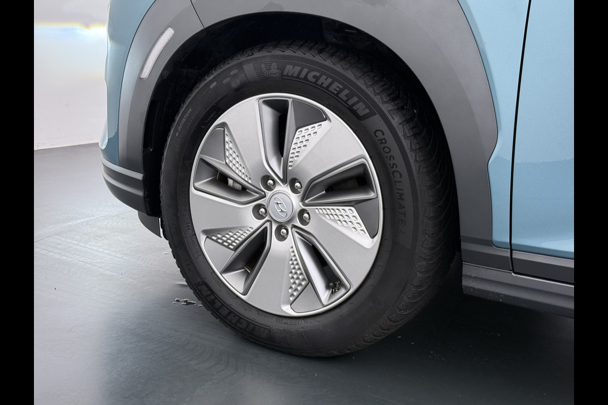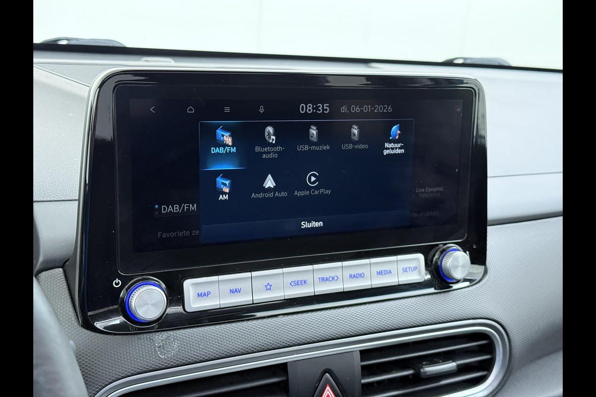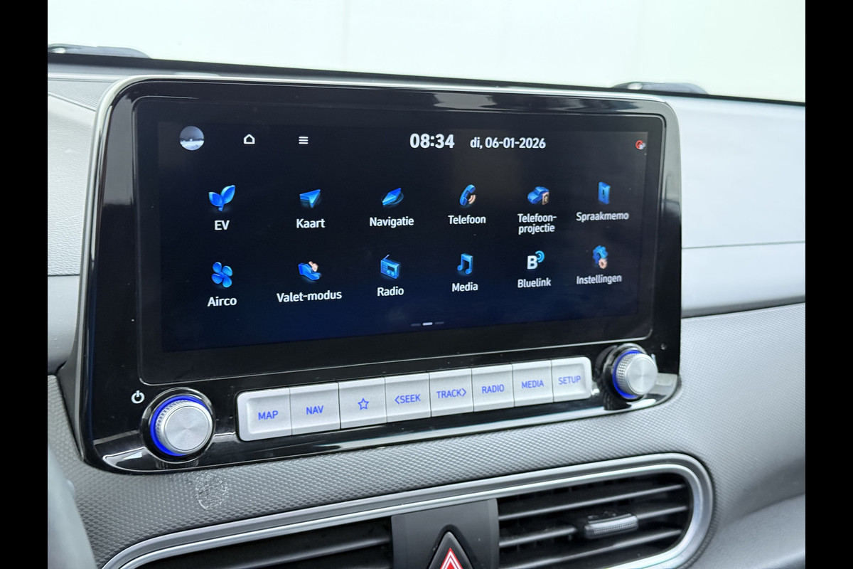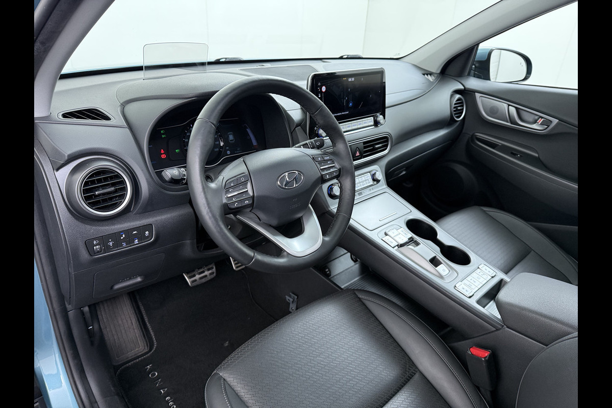 Hyundai Kona EV 64kWh SOH 100% Fase 3 Warmtepomp Leer+Elektr+Verwarmd+Gekoeld! Schuif-/kanteldak Head-Up Display Adap.Cruise Apple Carplay An Keyless Stuurverwarming Blind Spot Monitoring Lane Assist DAB Led Origineel Nederlandse Auto Super compleet! € 46000 nieuw
