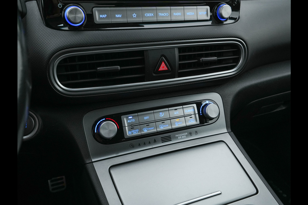 Hyundai Kona EV Fashion 64 kWh (3-Fase) {SOH-100%} (INCL-BTW) Aut * HEATPUMP | NAVI-FULLMAP | LEATHER-FABRIC | KEYLESS | CAMERA | DAB | ECC | PDC | ADAPTIVE-CRUISE | LANE-ASSIST | HEATED SEATS | PRIVACY-GLASS | HEAD-UP | SHIFT-PADDLES | 17"A