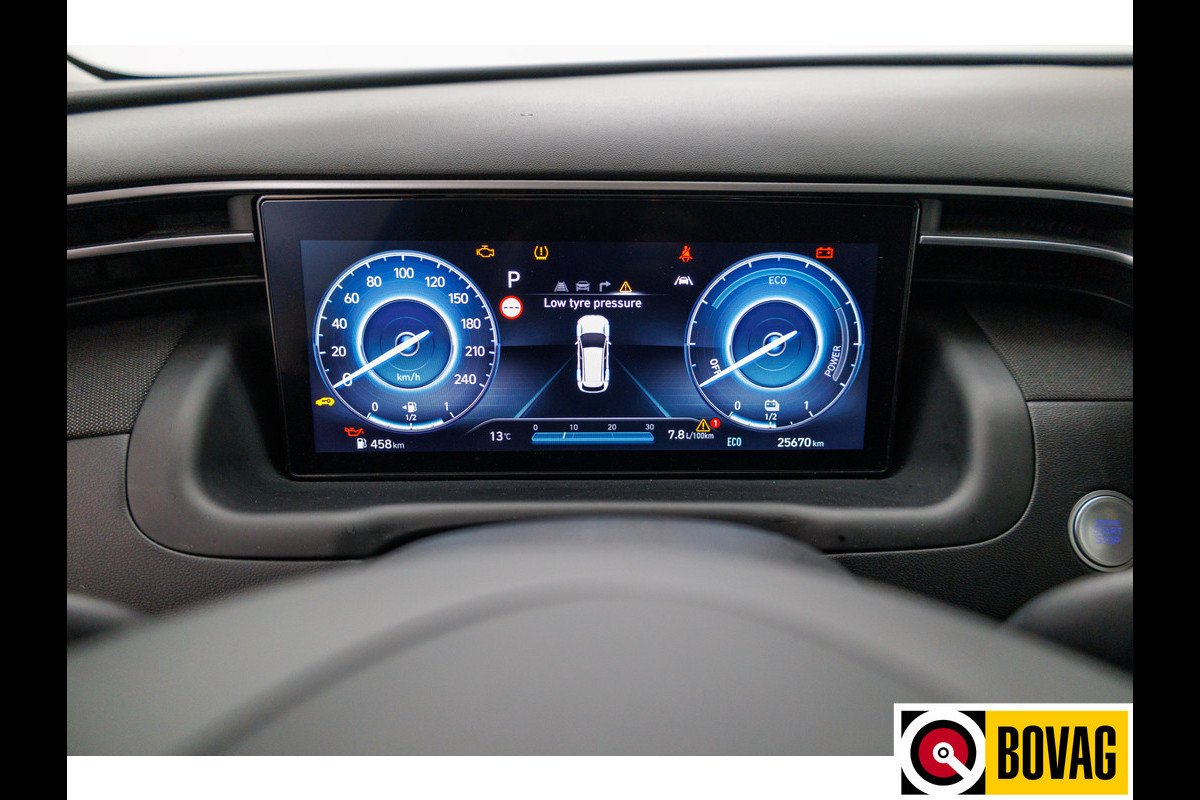 Duik in de digitale wereld van mobiliteit waar alles wat u nodig heeft voor een comfortabele en veilige rit, wordt geprojecteerd op het digitale dashboard. De achteruitrijcamera geeft u duidelijk zicht op de ruimte achter de auto. Adaptive cruise control is een comfortabele en veilige optie. Het systeem reguleert de snelheid en houdt automatisch afstand tot uw voorligger. Rijden-stilstaan, rijden-stilstaan. Niks is irritanter en vermoeiender dan filerijden. Daar heeft deze Hyundai Tucson een oplossing voor: de file assistent, die met radarmeting permanent het tempo aanpast op de voorligger. Zelfs als die stopt. Dankzij de spraaksturing bedient u verschillende functies zonder uw handen van het stuur te halen. Ook connected drive services, premium audiosysteem, full map navigatiesysteem, kruisend verkeer detectie, automatische airconditioning en schakelpaddles aan het stuur zijn aan boord.