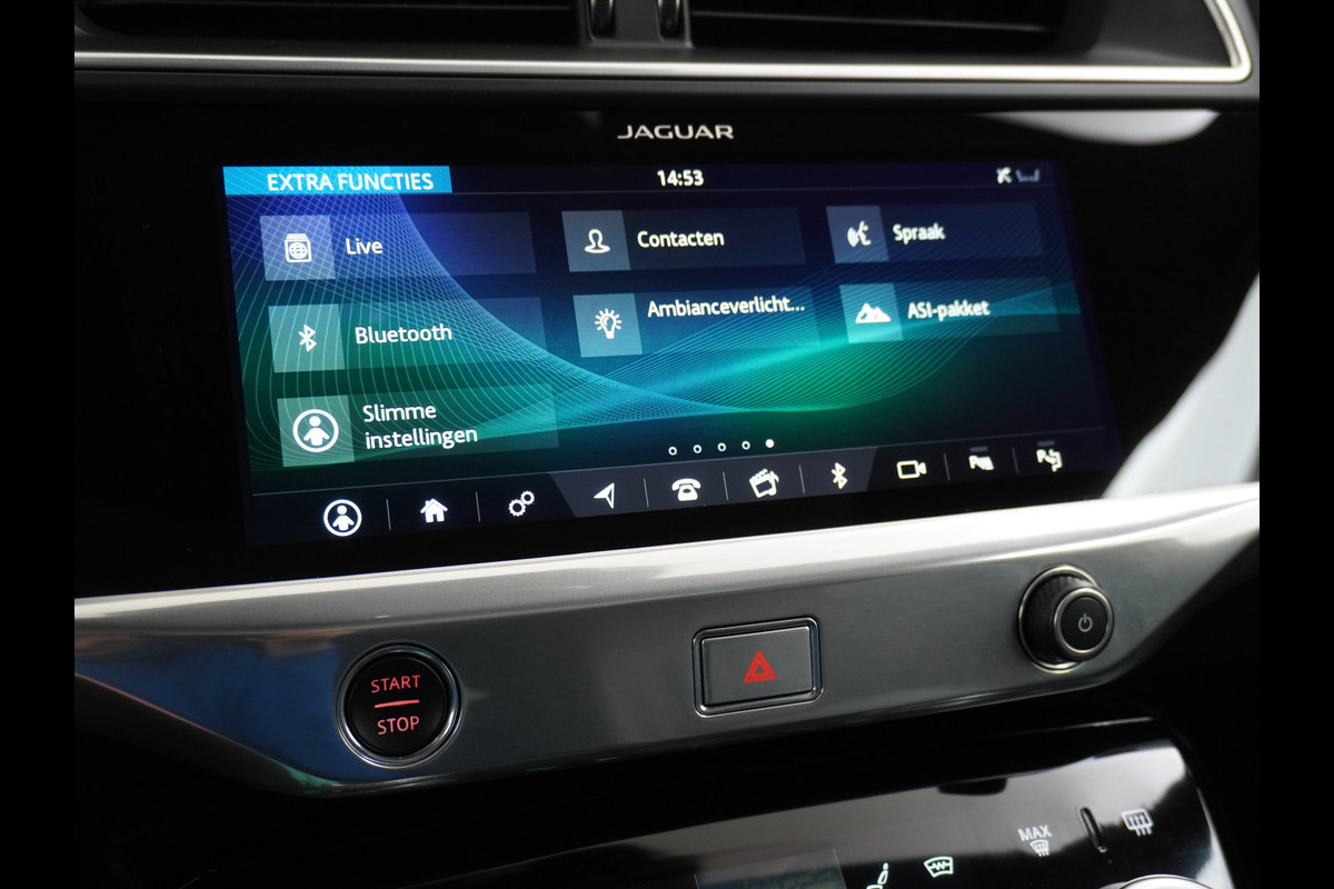 Zoals u mag verwachten van deze Jaguar I-PACE is hij uitgerust met een reeks aan actieve veiligheidssystemen. Verkeersborddetectie herkent tijdelijke en permanente verkeersborden langs en boven de weg. Vermoeid achter het stuur zitten vergroot de kans op een ongeval. Vermoeidheidsherkenning waarschuwt tijdig als u aan een rustpauze toe bent. De veiligheidsoptie van de lane assist is een rijstrookhulp die ervoor zorgt dat u niet ongecontroleerd van baan wisselt. De auto is ook uitgerust met head-up display, dodehoekdetectie, hill hold functie en autonoom remsysteem.