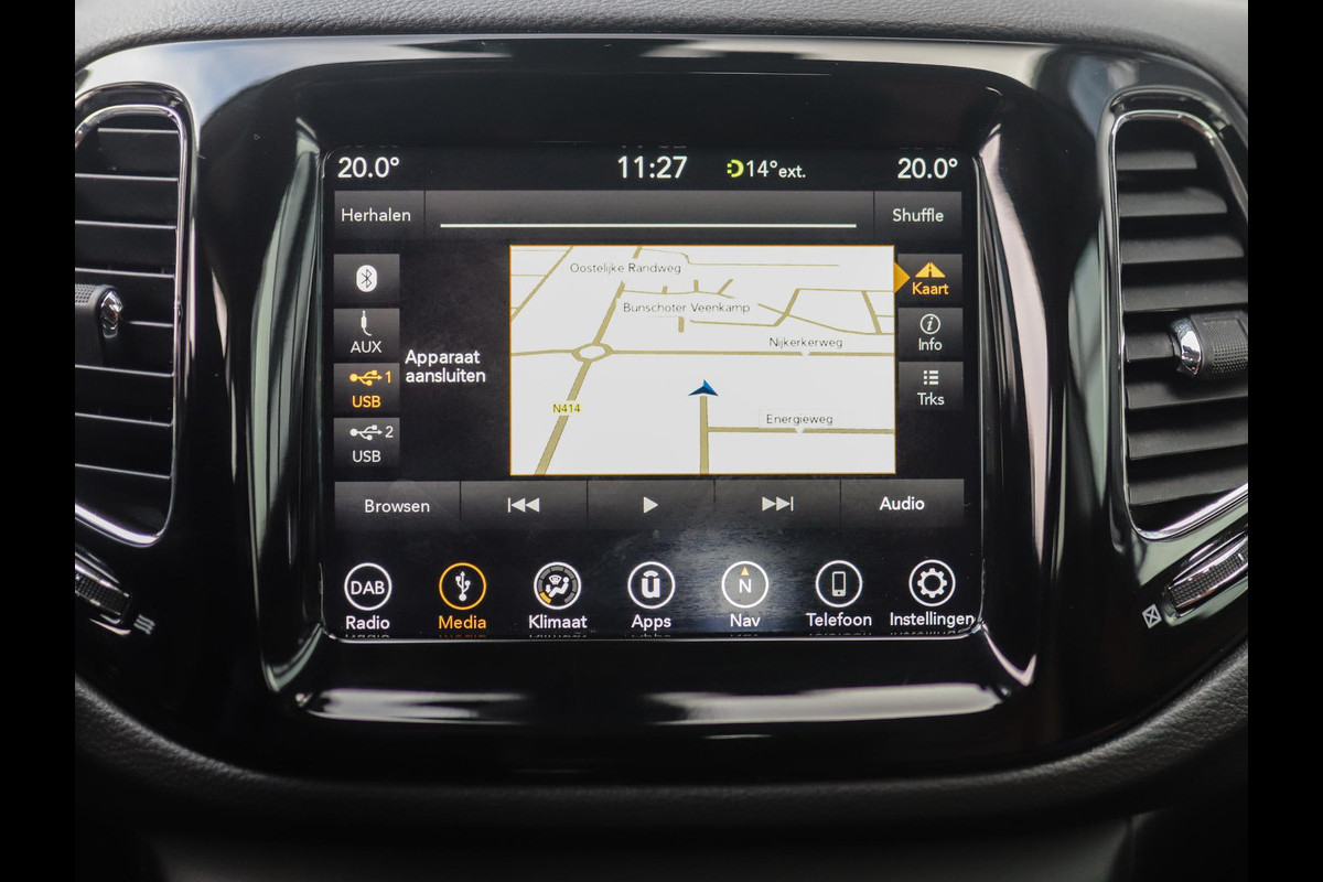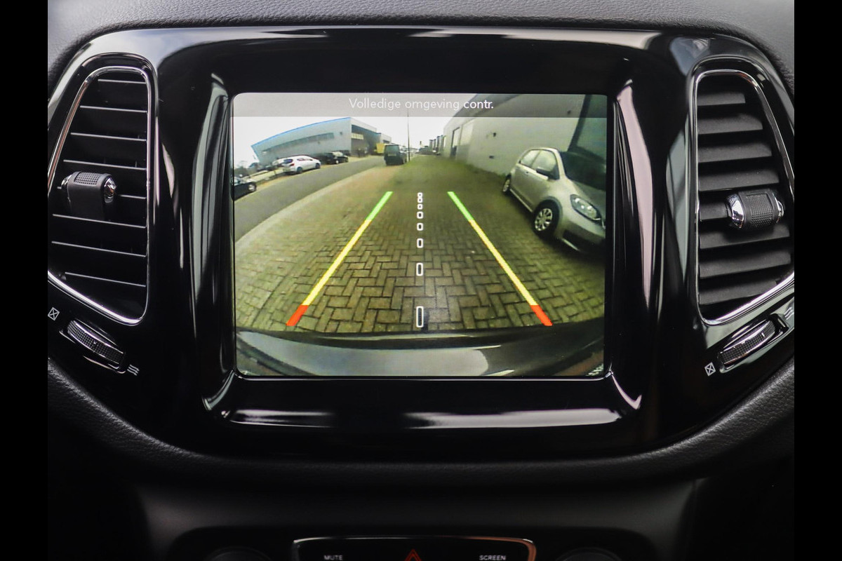 De achteruitrijcamera laat duidelijk zien hoeveel ruimte u nog heeft bij het inparkeren. De kortste weg, de zuinigste weg, de snelste weg... elke weg is te vinden met het full map navigatiesysteem. Deze Jeep Compass is voorzien van sensoren aan de achterzijde om een achteropkomend verkeer waarschuwing te geven als de afstand tussen u en een achterligger te klein is. Of het buiten nu warm is of koud, dankzij automatische airconditioning is het binnen altijd behaaglijk. Switchen van radiozender of het geluid dempen - het gaat gemakkelijk en veilig dankzij de audiobediening op het stuur. Ook DAB ontvangst, cruise control, lederen stuur en centrale deurvergrendeling met afstandsbediening horen tot de voorzieningen op deze auto.