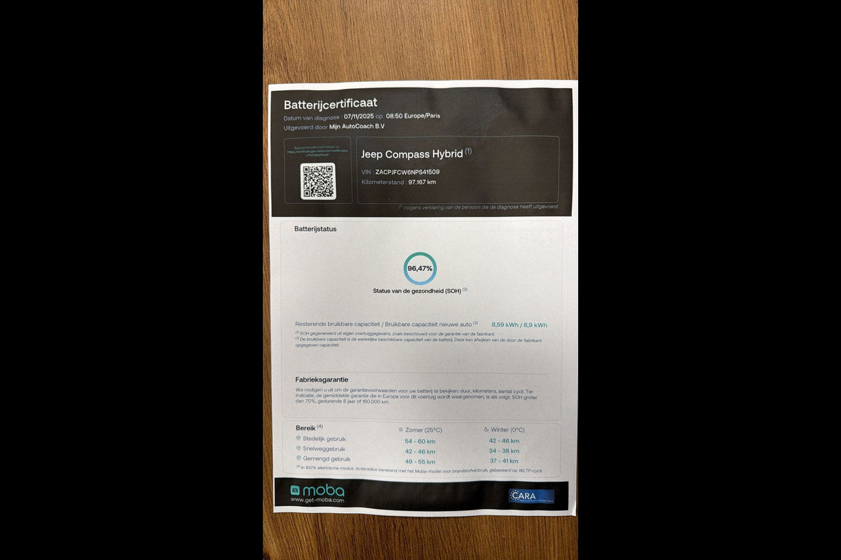 Na de meting ontvangt u van ons een officieel certificaat met de vastgestelde SOH-waarde, dit biedt transparantie en zekerheid bij aankoop.