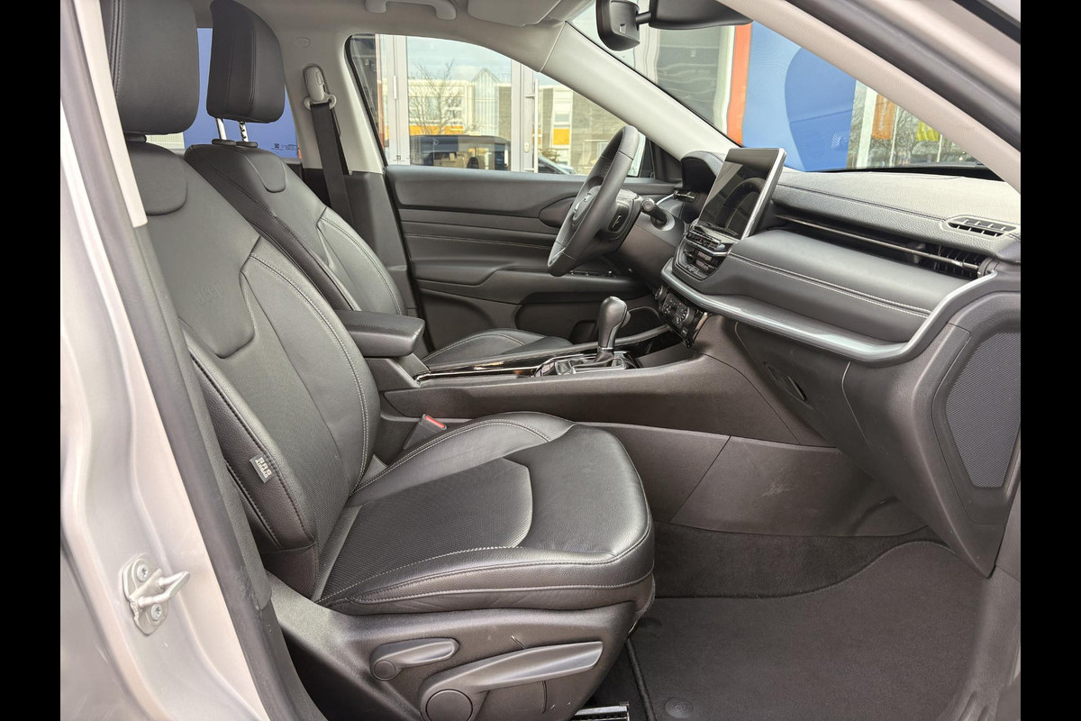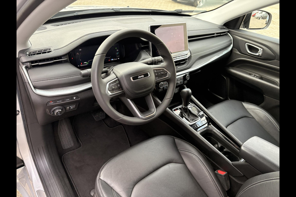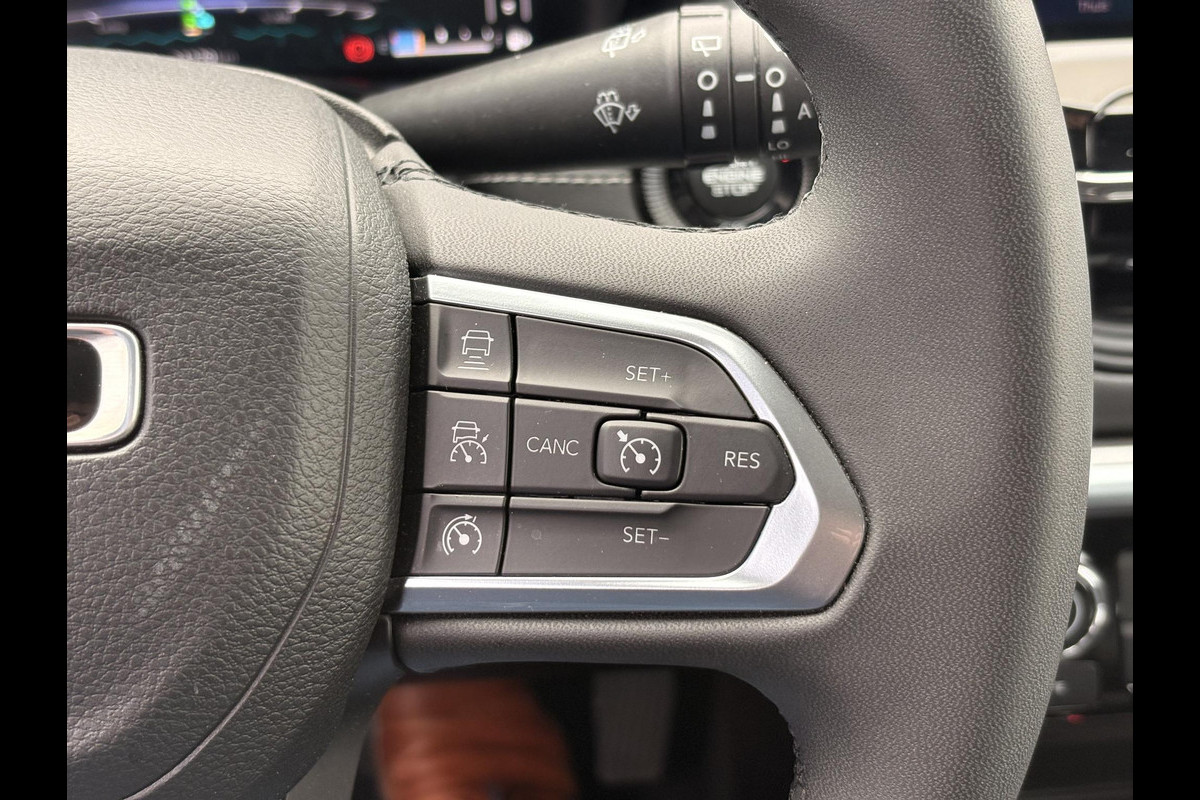 Rij- en route-info wordt perfect in beeld gebracht door het digitale dashboard. Altijd achter zicht, nooit meer nekkramp! De achteruitrijcamera maakt het supermakkelijk. Als u de adaptive cruise control inschakelt, regelt de auto zelf de snelheid en de afstand tot de auto voor u. Hoe is het met de banden, de accu en andere onderdelen? Connected Services maakt het inzichtelijk, 24/7 via de app. Uw veiligheid op de weg wordt verhoogd door het audiosysteem met DAB-ontvangst en het full map navigatiesysteem te bedienen vanaf het stuur of met spraakbediening, zodat uw handen veilig op het stuur blijven en uw ogen gericht zijn op de weg. Met automatische airconditioning, draadloos opladen, regensensor, keyless entry, automatisch dimmende binnenspiegel en lederen stuur is deze Jeep helemaal compleet.