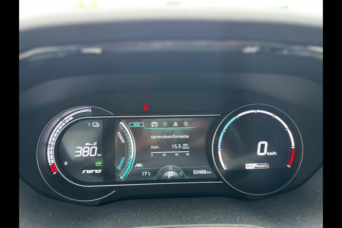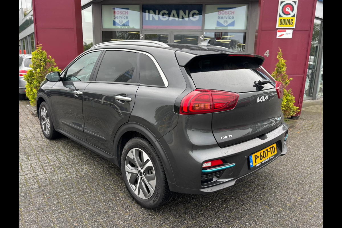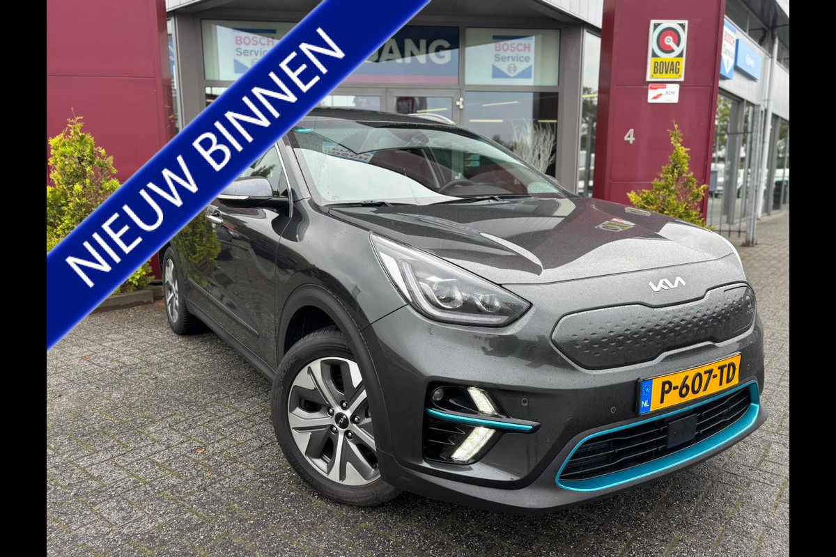 Efficiënte techniek en ongekende dynamiek. Het plezier van elektrisch rijden gaat in deze Kia e-Niro samen met een spaarzaam stroomverbruik. Eindelijk elektrisch rijden? Deze auto is voorzien van een elektromotor. Dus stil, schoon én snel! De krachtige motor geeft deze Kia uitstekende prestaties. Behaaglijk onderweg zijn? Als bestuurder geniet u van de verwarmbare voorstoelen. Net als uw bijrijder! Fijn zo'n elektrisch bediend glazen panoramadak. Bij de uitrusting van deze auto horen onder meer 17 inch lichtmetalen velgen, LED koplampen, donker getint glas achter, in delen neerklapbare achterbank en LED-achterlichten.
