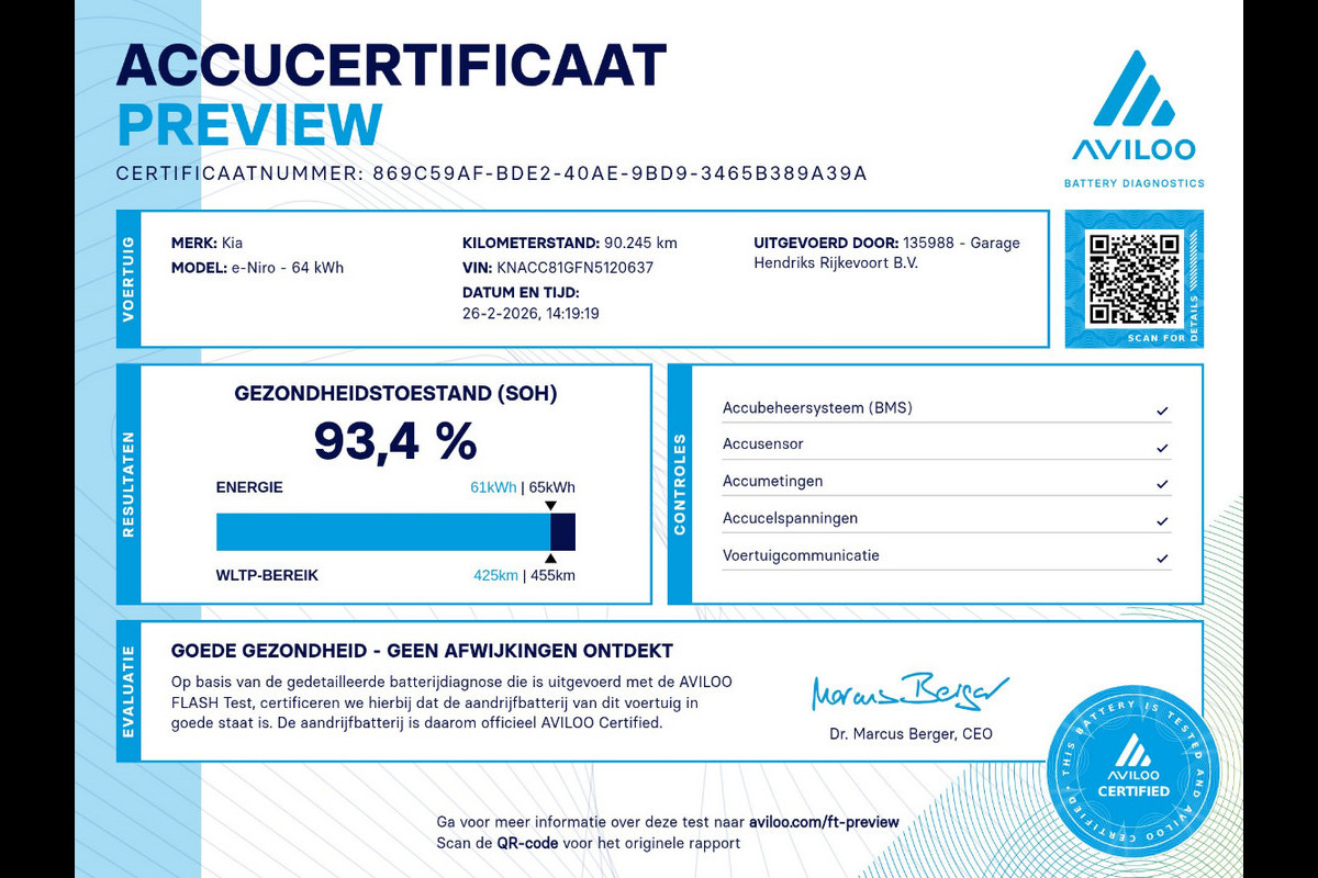 Edition 64 kWh | SOH: 93,4% | Climate | Camera | Navi | Leder Stof |