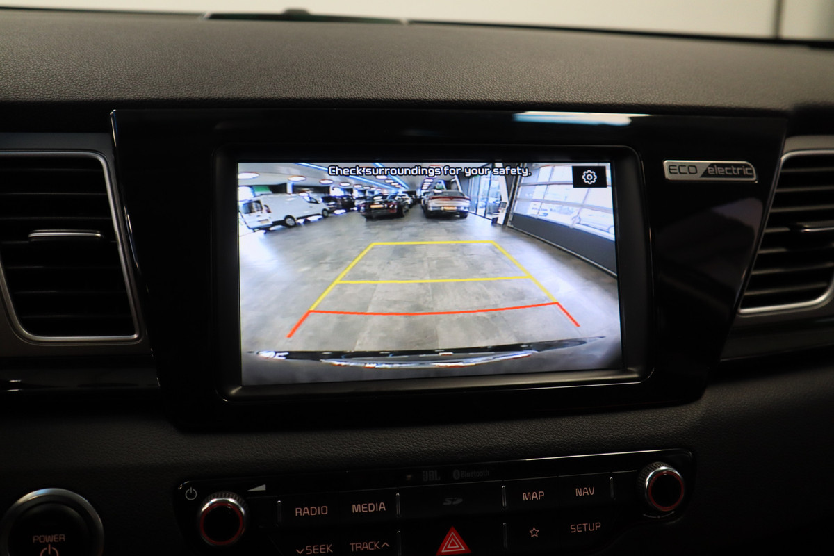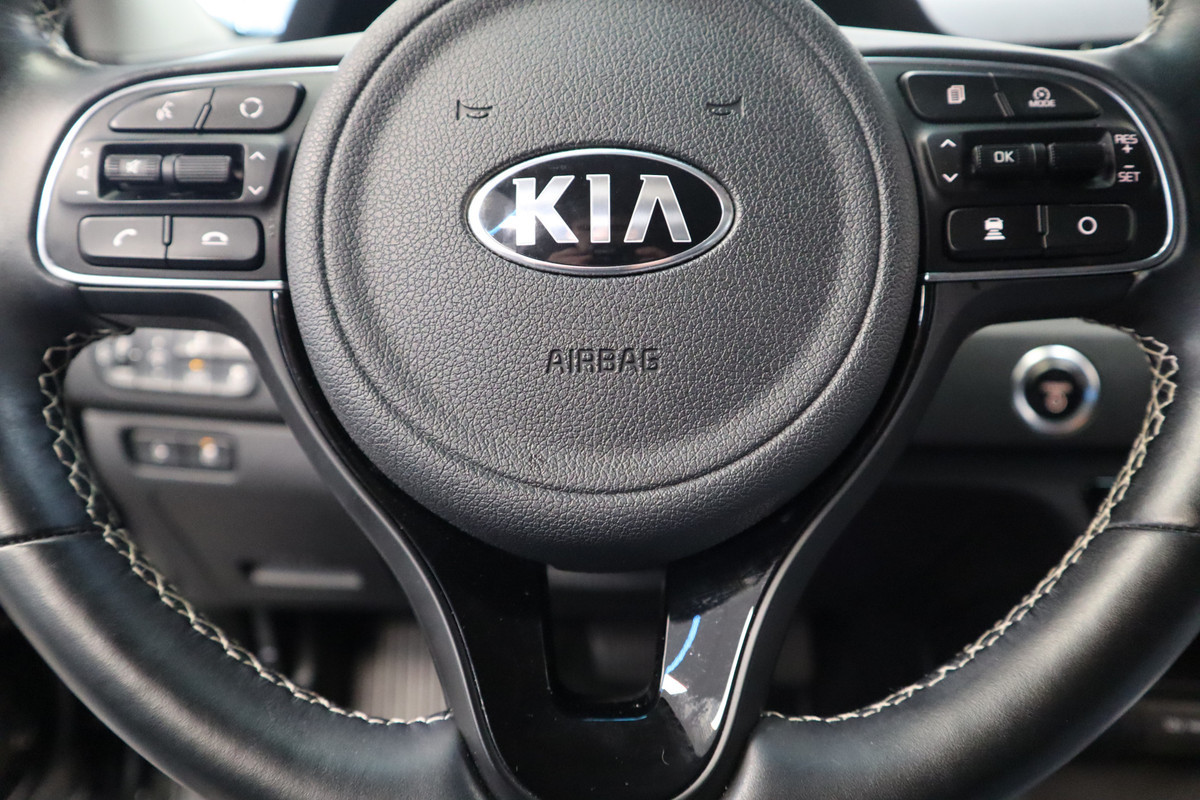 Zoals u mag verwachten van deze Kia e-Niro is hij uitgerust met een reeks aan actieve veiligheidssystemen. Een camera houdt de juiste koers binnen de rijstrook in de gaten en het Lane-keeping systeem corrigeert bij afwijkingen. Mindert een voorligger onverwachts te veel vaart, dan komt de forward collision warning in actie en waarschuwt meteen. Op lange ritten voorkomt de vermoeidheidsassistent dat uw concentratie afneemt. Dankzij veiligheidsvoorzieningen als dodehoekdetectie, hill hold functie, autonoom remsysteem en bandenspanningcontrolesysteem, bent u steeds veilig onderweg.